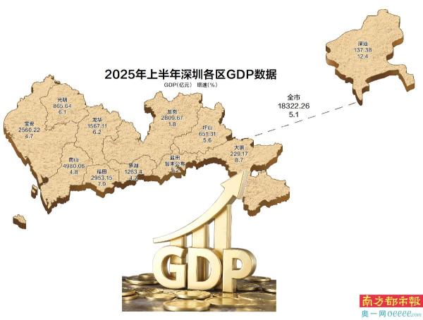 2025年上半年,深圳市GDP(地区生产总值)达18322.26亿元,按不变价格计算,同比增长5.1%。
