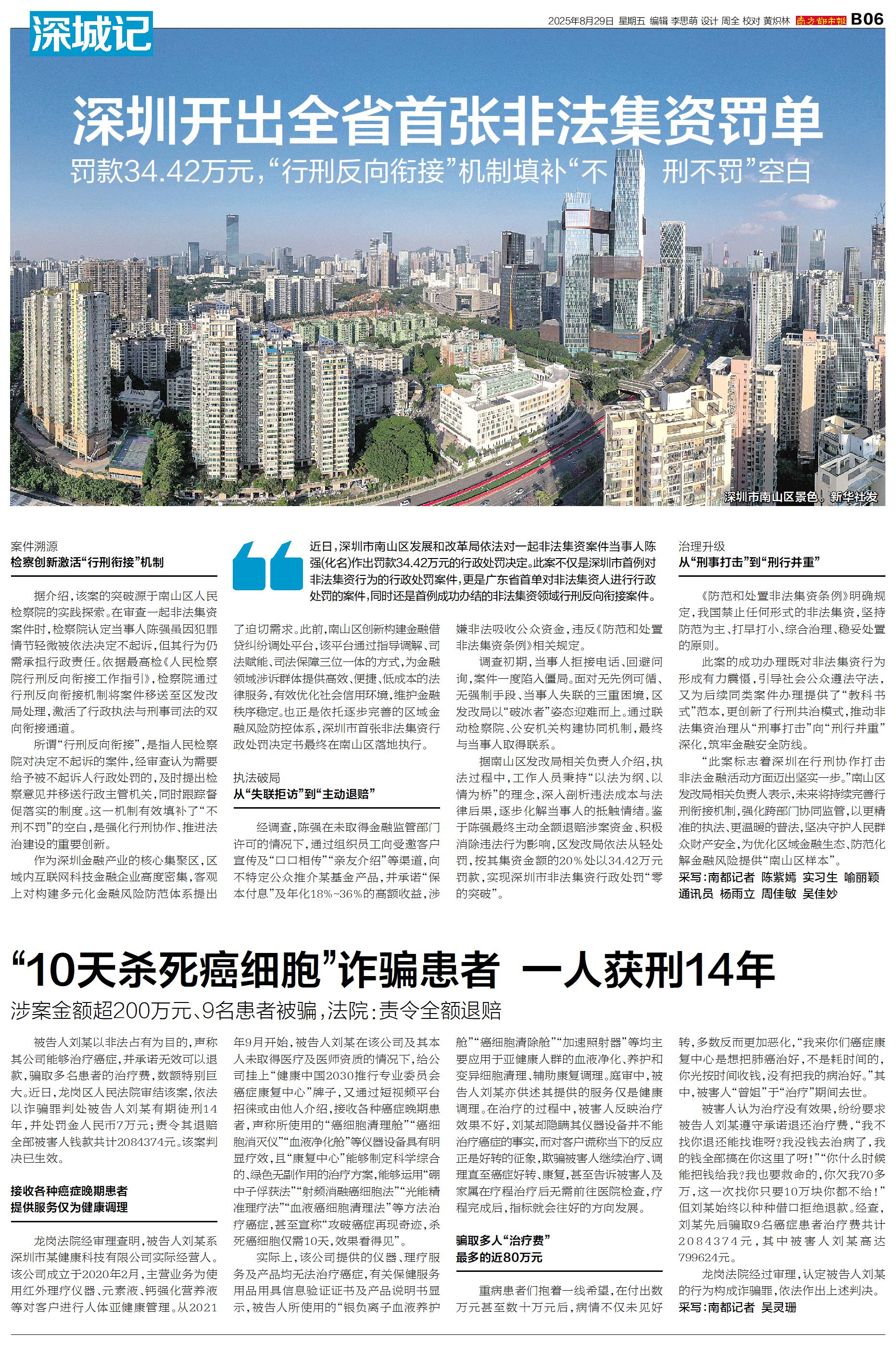 深圳市南山区景色。 新华社发 近日,深圳市南山区发展和改革局依法对一起非法集资案件当事人陈强(化名)作出罚款34.42万元的行政处罚决定。此案不仅是深圳市首例对非法集资