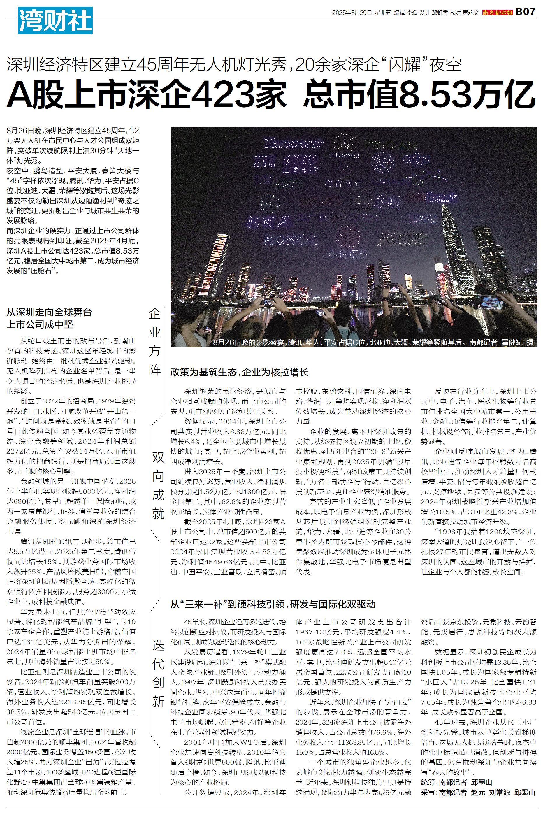 A股上市深企423家 总市值8.53万亿