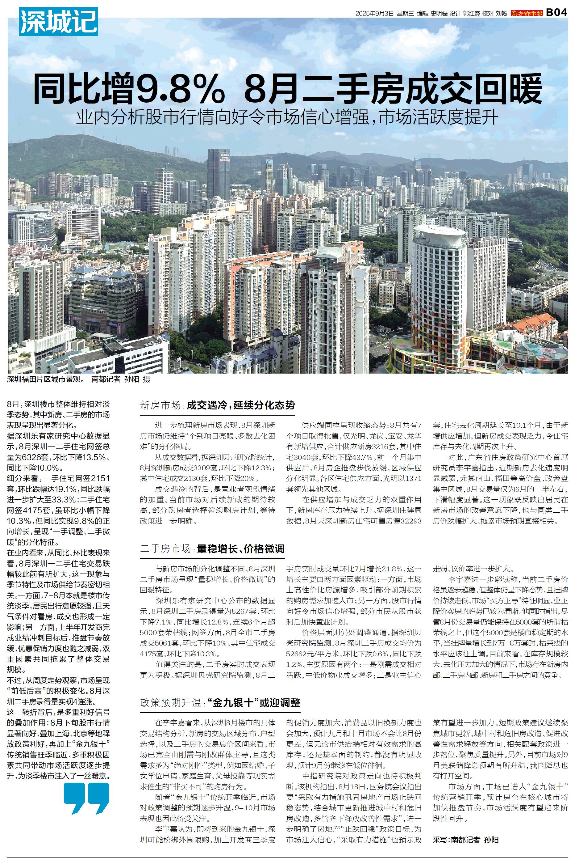 8月,深圳楼市整体维持相对淡季态势,其中新房、二手房的市场表现呈现出显著分化。 据深圳乐有家研究中心数据显示,8月深圳一二手住宅网签总量为6326套,环比下降13.5%、同比下降10.0%。