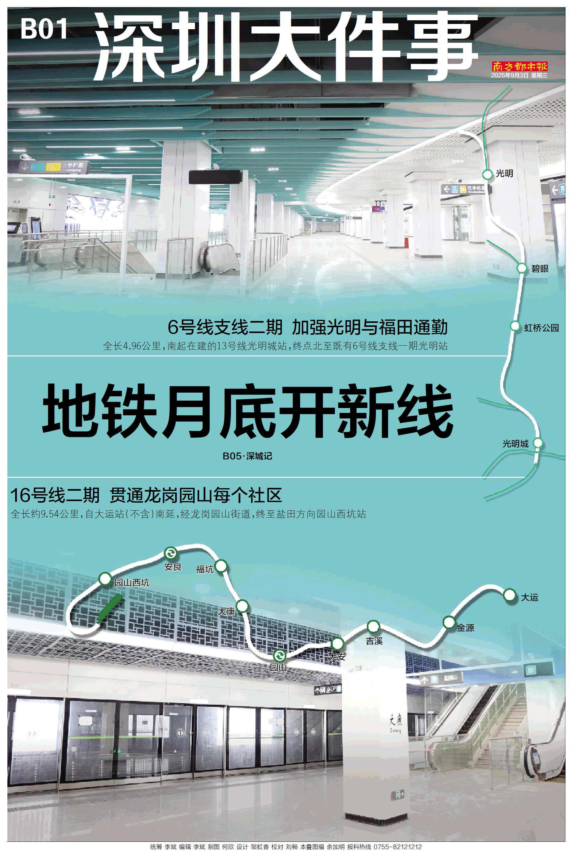 6号线支线二期 加强光明与福田通勤 全长4.96公里,南起在建的13号线光明城站,终点北至既有6号线支线一期光明站 16号线二期 贯通龙岗园山每个社区