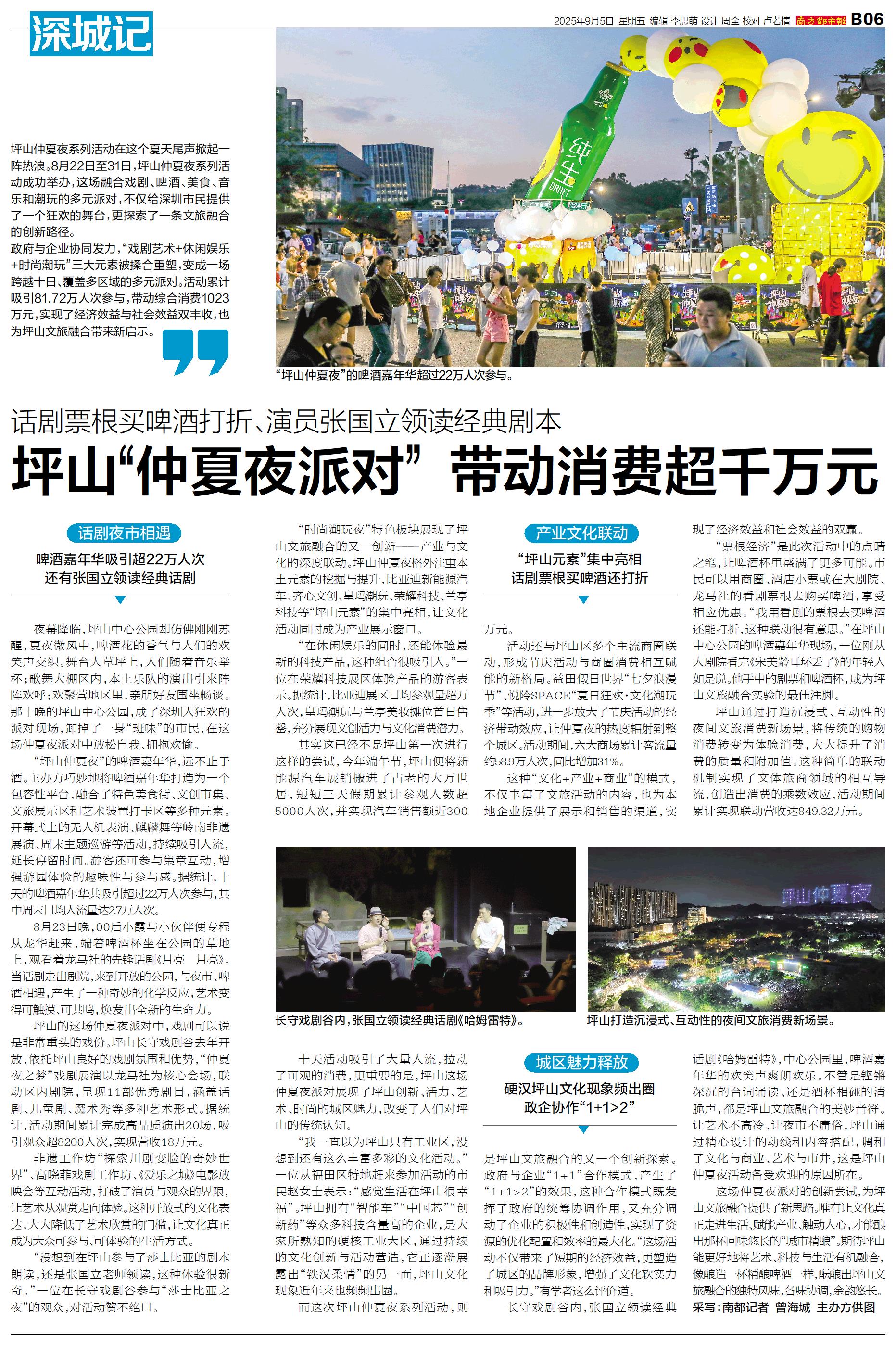 坪山仲夏夜系列活动在这个夏天尾声掀起一阵热浪。8月22日至31日,坪山仲夏夜系列活动成功举办,这场融合戏剧、啤酒、美食、音乐和潮玩的多元派对,不仅给深圳市民提供了一个狂欢的舞台,更探索了一条文旅融