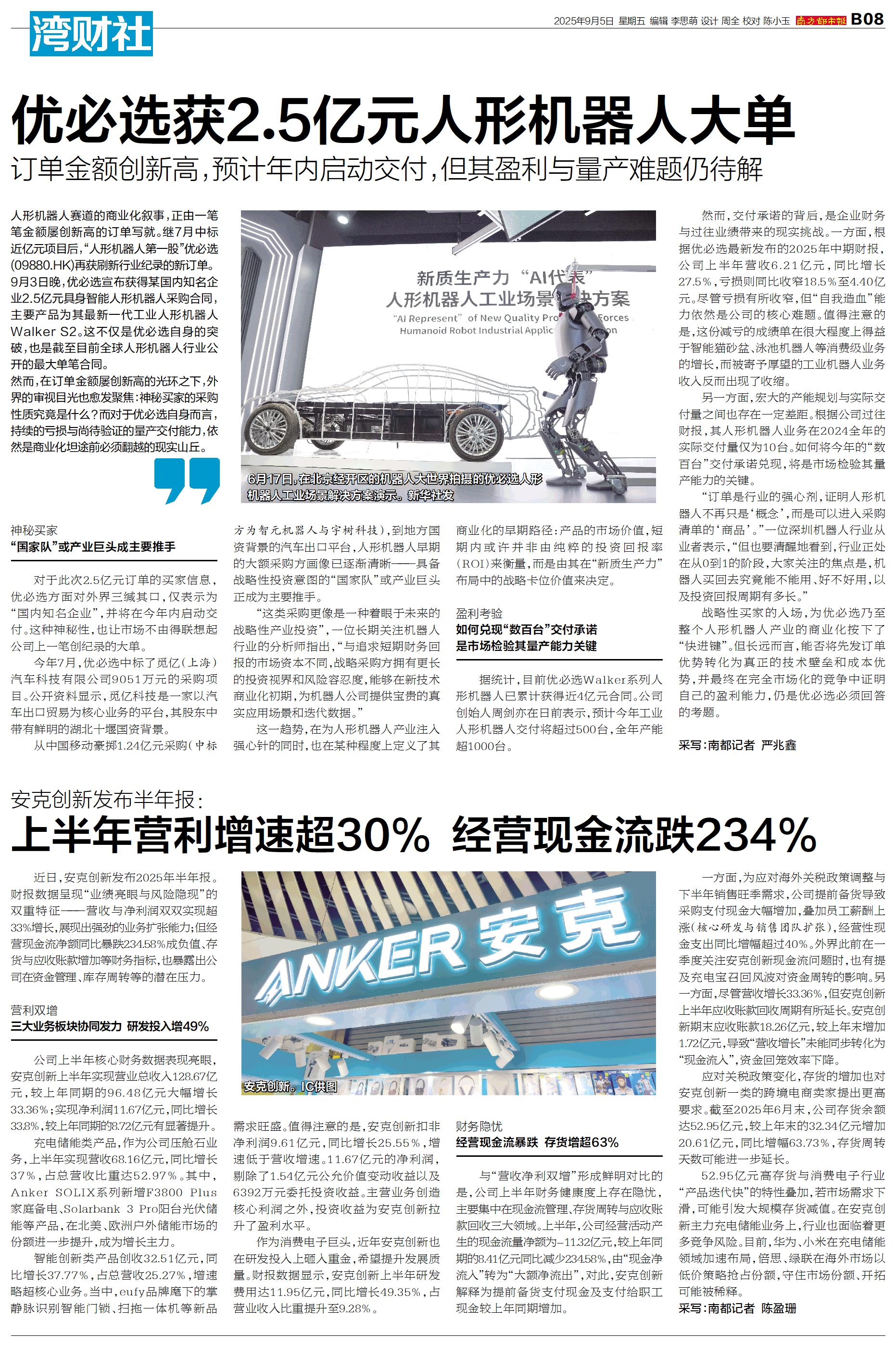 近日,安克创新发布2025年半年报。财报数据呈现“业绩亮眼与风险隐现”的双重特征——营收与净利润双双实现超33%增长,展现出强劲的业务扩张能力;但经营现金流净额同比暴跌234.58%成负值、存货与