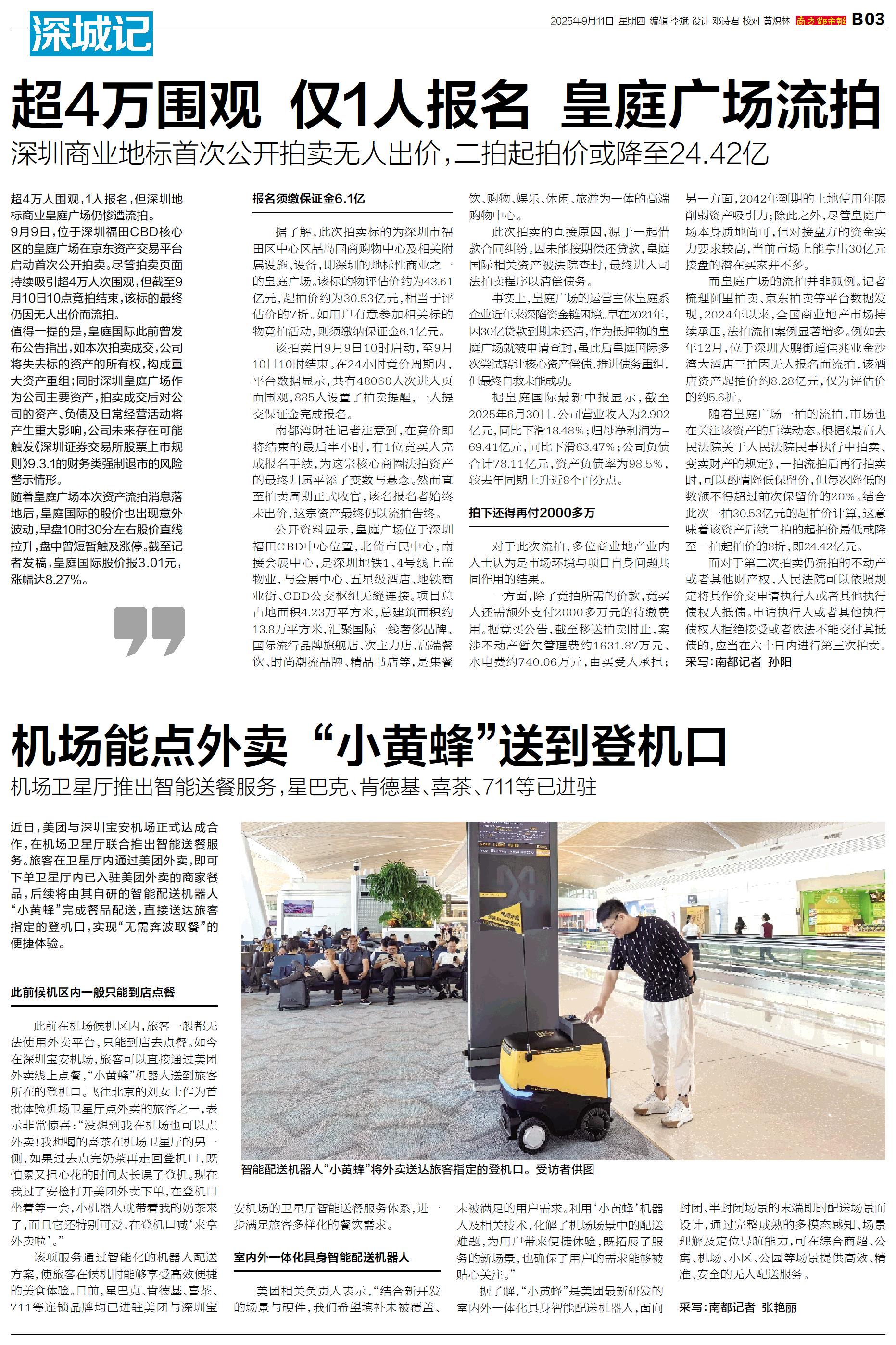 超4万人围观,1人报名,但深圳地标商业皇庭广场仍惨遭流拍。 9月9日,位于深圳福田CBD核心区的皇庭广场在京东资产交易平台启动首次公开拍卖。尽管拍卖页面持续吸引超4万人次围观,但截至9月10日1