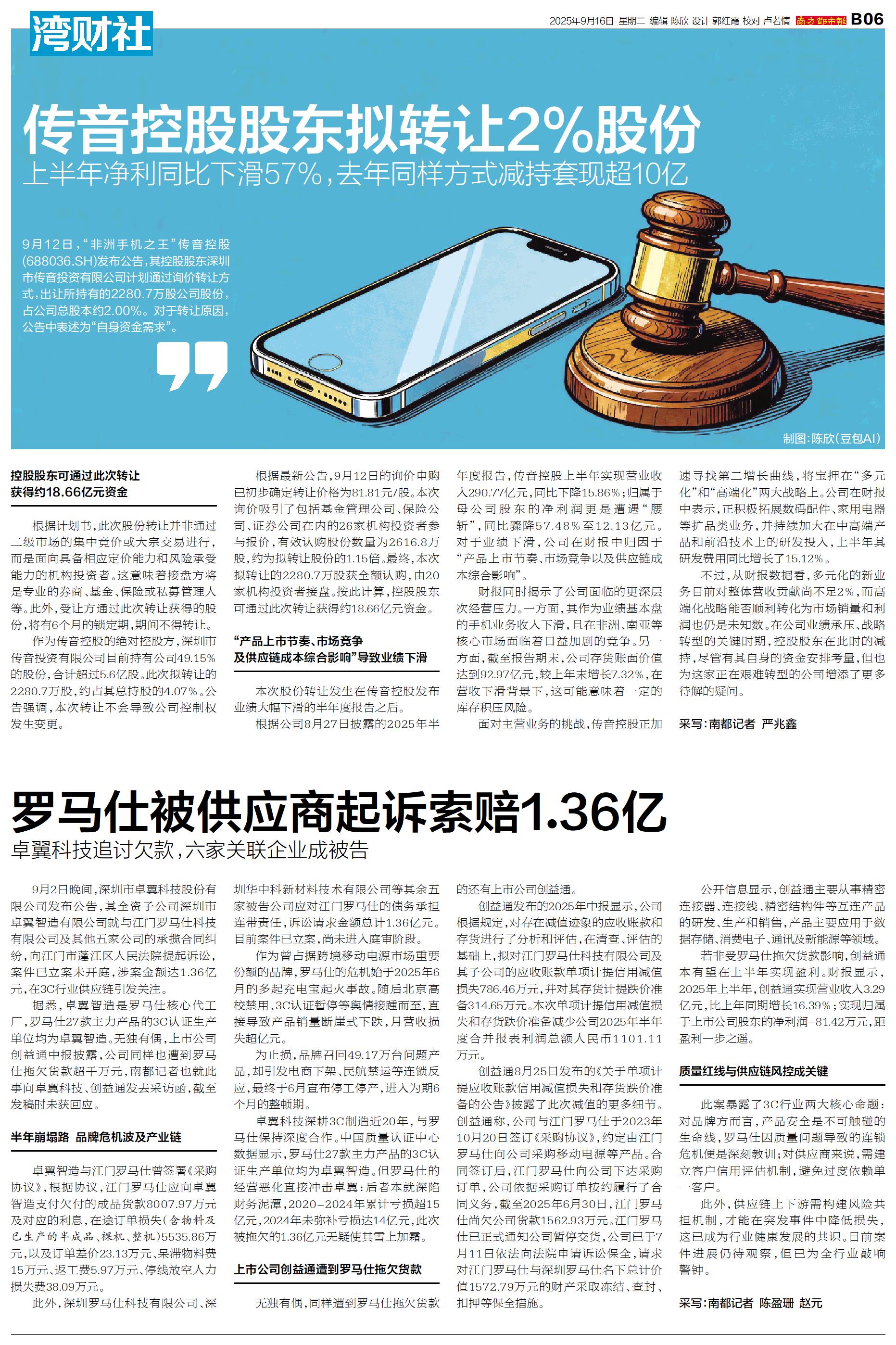 9月2日晚间,深圳市卓翼科技股份有限公司发布公告,其全资子公司深圳市卓翼智造有限公司就与江门罗马仕科技有限公司及其他五家公司的承揽合同纠纷,向江门市蓬江区人民法院提起诉讼,案件已立案未开庭,涉案金额达1.36亿元,在3C行业供应链引发关注。