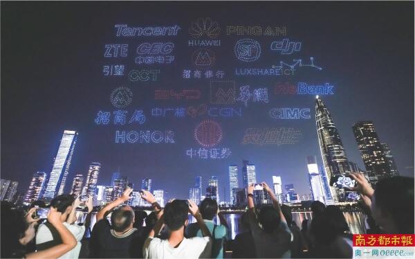 8月26日,深圳经济特区建立45周年无人机表演,20余家深企“闪耀”夜空。 南都记者 霍健斌 摄