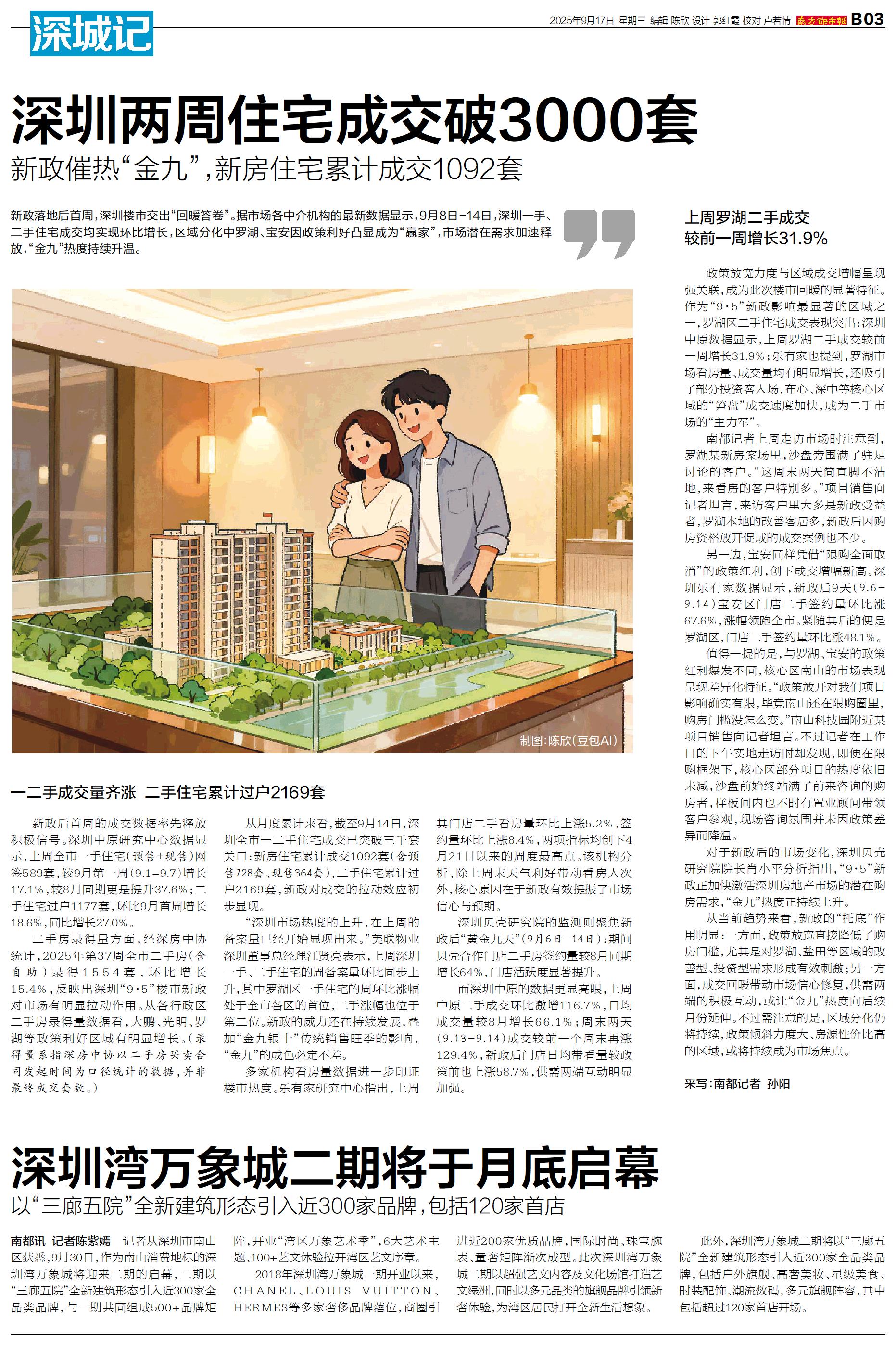 新政落地后首周,深圳楼市交出“回暖答卷”。据市场各中介机构的最新数据显示,9月8日-14日,深圳一手、二手住宅成交均实现环比增长,区域分化中罗湖、宝安因政策利好凸显成为“赢家”,市场潜在需求加速释