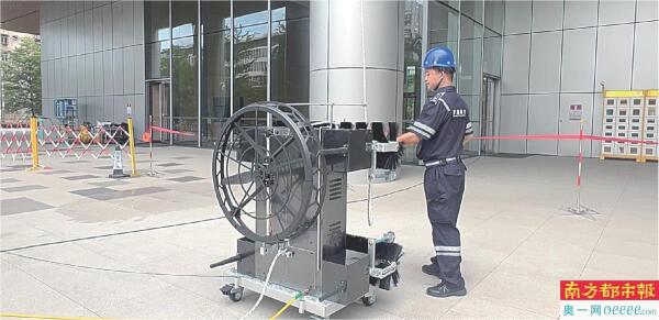罗湖积余城市服务有限公司董事长杨剑指着设备中间的风扇解释:“传统机器人靠真空吸附,遇到凸起就会‘卡壳’。我们用螺旋桨推力替代真空泵,配合可伸缩滚轮,就像给机器人装上了‘弹簧腿’,可以提供推力和姿态控制,适合90%的复杂楼面环境以及各种表面材质。”