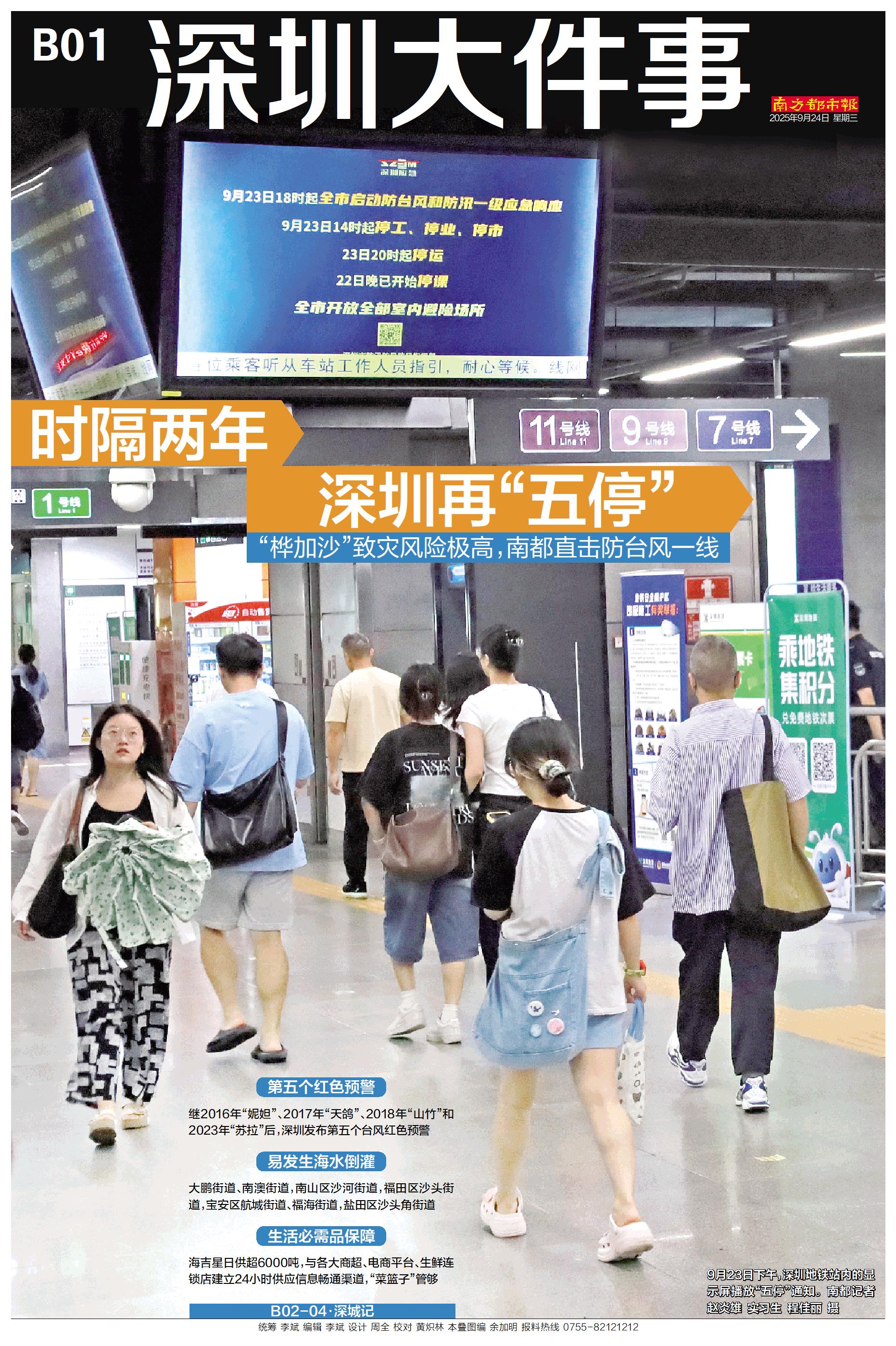 第五个红色预警 继2016年“妮妲”、2017年“天鸽”、2018年“山竹”和2023年“苏拉”后,深圳发布第五个台风红色预警 易发生海水倒灌 大鹏街道、南澳街道,南山区沙河街道,福田区沙头