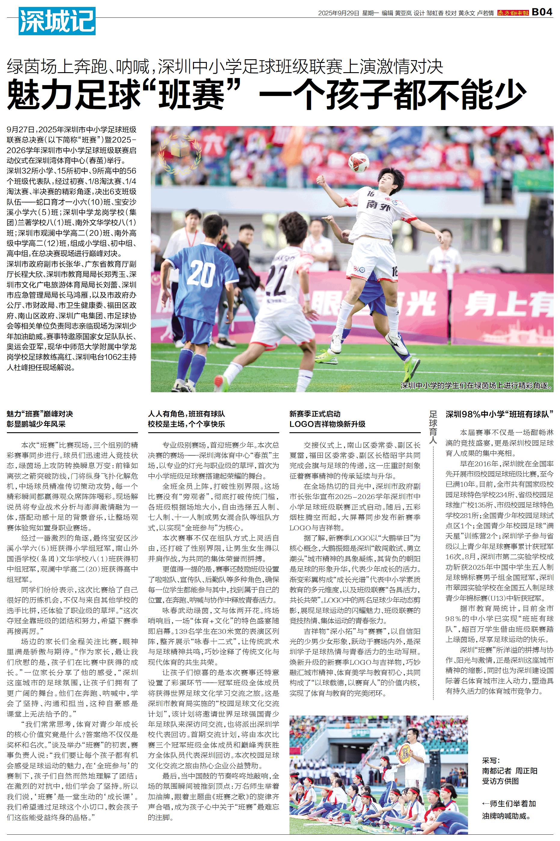 9月27日,2025年深圳市中小学足球班级联赛总决赛(以下简称“班赛”)暨2025-2026学年深圳市中小学足球班级联赛启动仪式在深圳湾体育中心(春茧)举行。 深圳32所小学、15所初中、9所高