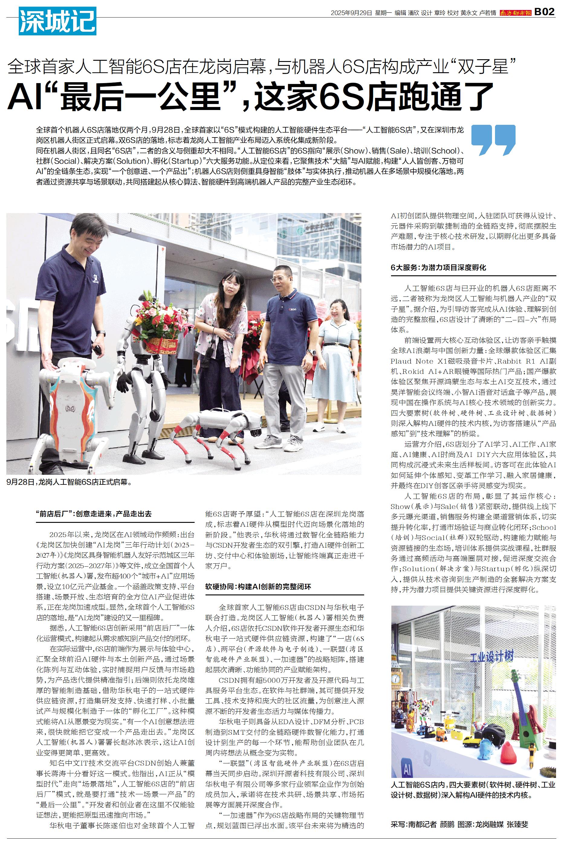 全球首个机器人6S店落地仅两个月,9月28日,全球首家以“6S”模式构建的人工智能硬件生态平台——“人工智能6S店”,又在深圳市龙岗区机器人街区正式启幕。双6S店的落地,标志着龙岗人工智能产业布局