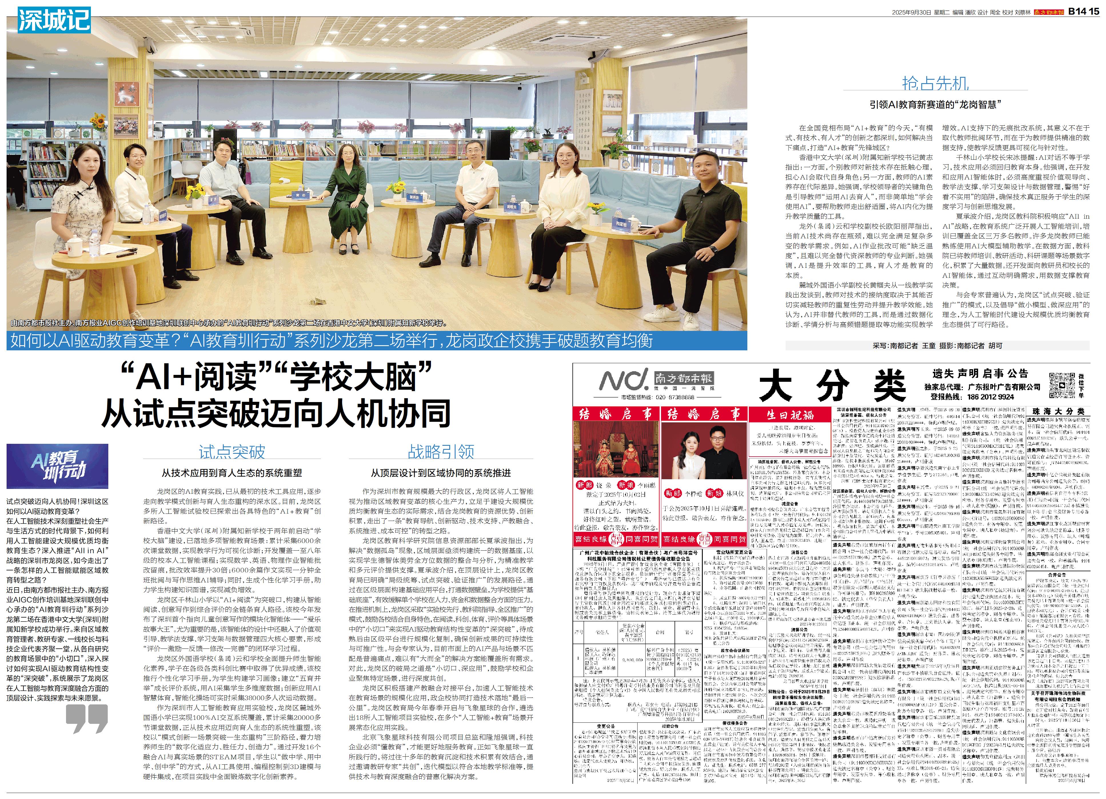 试点突破迈向人机协同!深圳这区如何以AI驱动教育变革? 在人工智能技术深刻重塑社会生产与生活方式的时代背景下,如何利用人工智能建设大规模优质均衡教育生态?深入推进“All in AI”战略的深圳