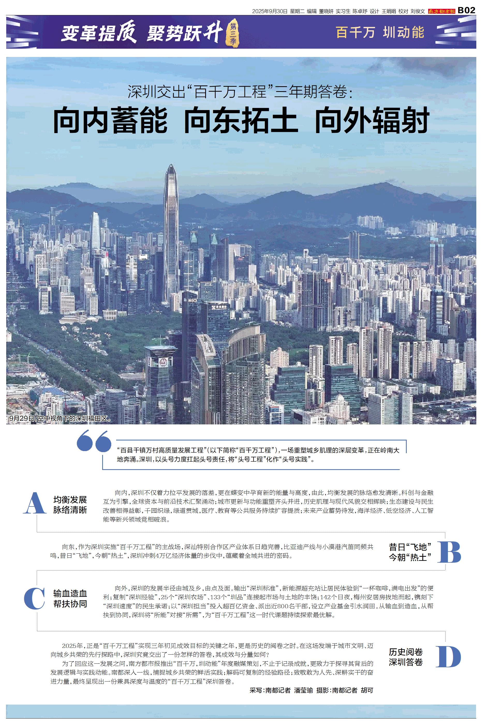 “百县千镇万村高质量发展工程”(以下简称“百千万工程”),一场重塑城乡肌理的深层变革,正在岭南大地奔涌。深圳,以头号力度扛起头号责任,将“头号工程”化作“头号实践”。 A 均衡发展 脉络清晰