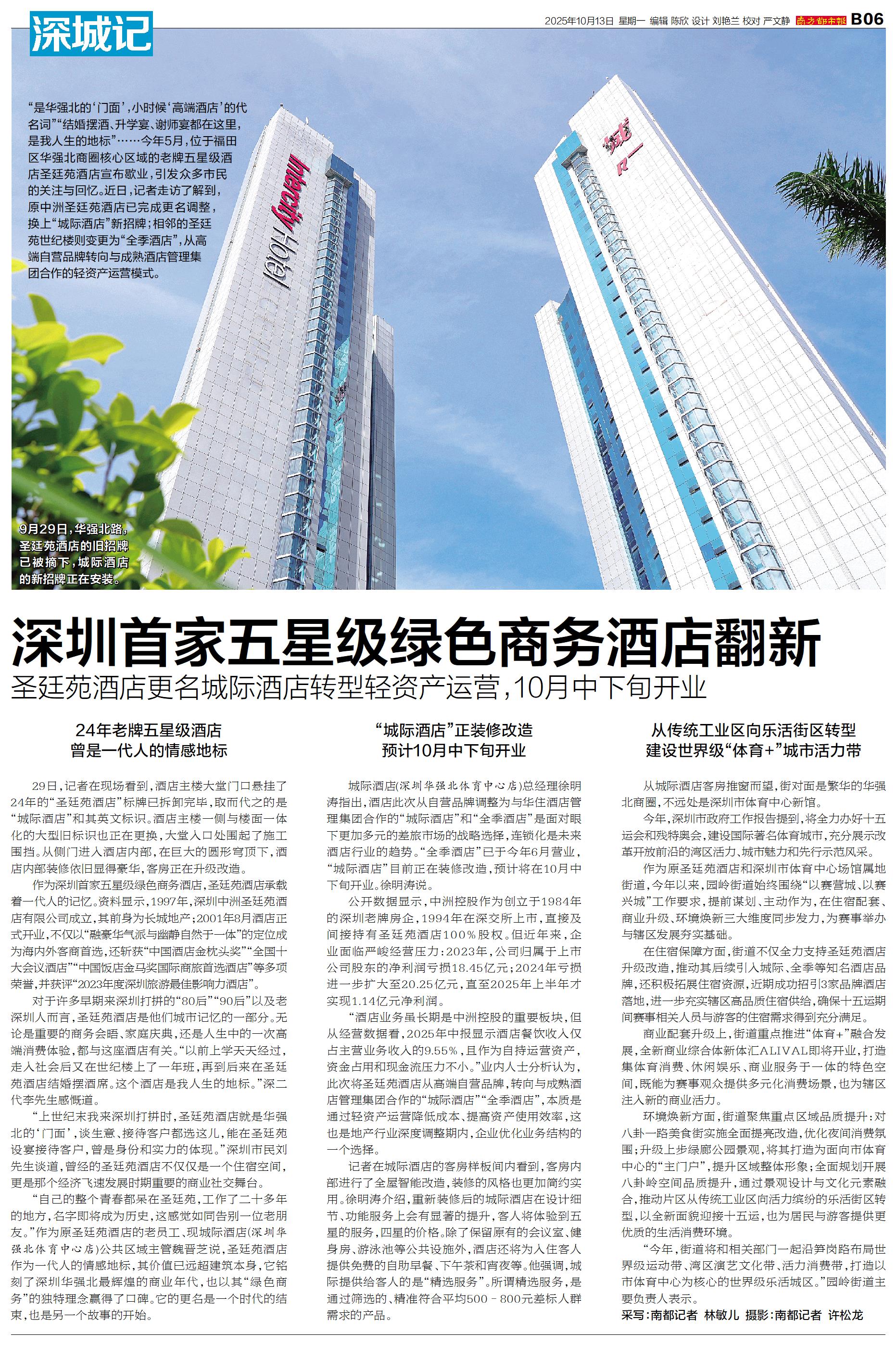 “是华强北的‘门面’,小时候‘高端酒店’的代名词”“结婚摆酒、升学宴、谢师宴都在这里,是我人生的地标”……今年5月,位于福田区华强北商圈核心区域的老牌五星级酒店圣廷苑酒店宣布歇业,引发众多市民的关