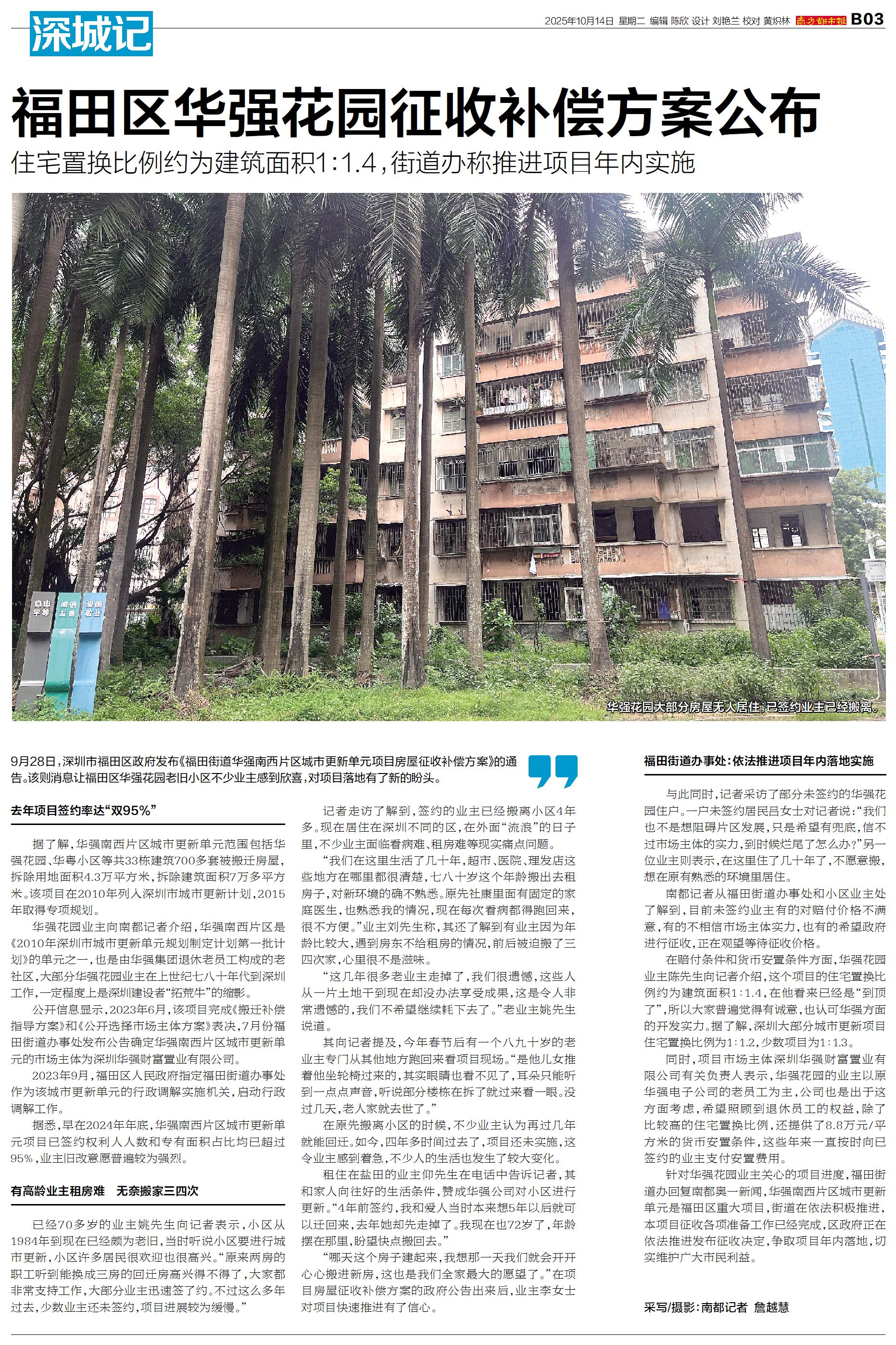 福田区华强花园征收补偿方案公布