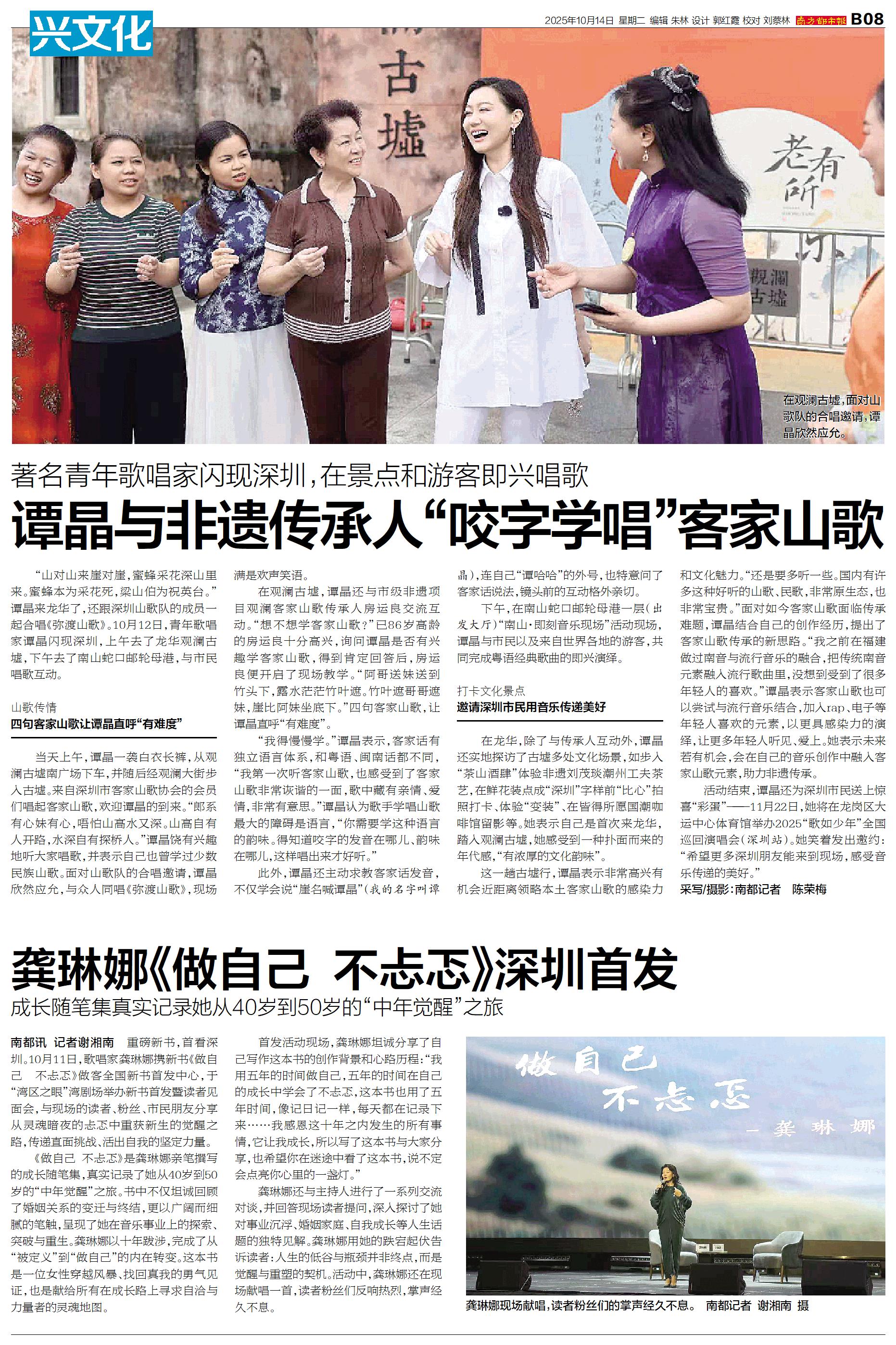 南都讯 记者谢湘南 重磅新书,首看深圳。10月11日,歌唱家龚琳娜携新书《做自己 不忐忑》做客全国新书首发中心,于“湾区之眼”湾剧场举办新书首发暨读者见面会,与现场的读者、粉丝、市民朋友分享从灵魂