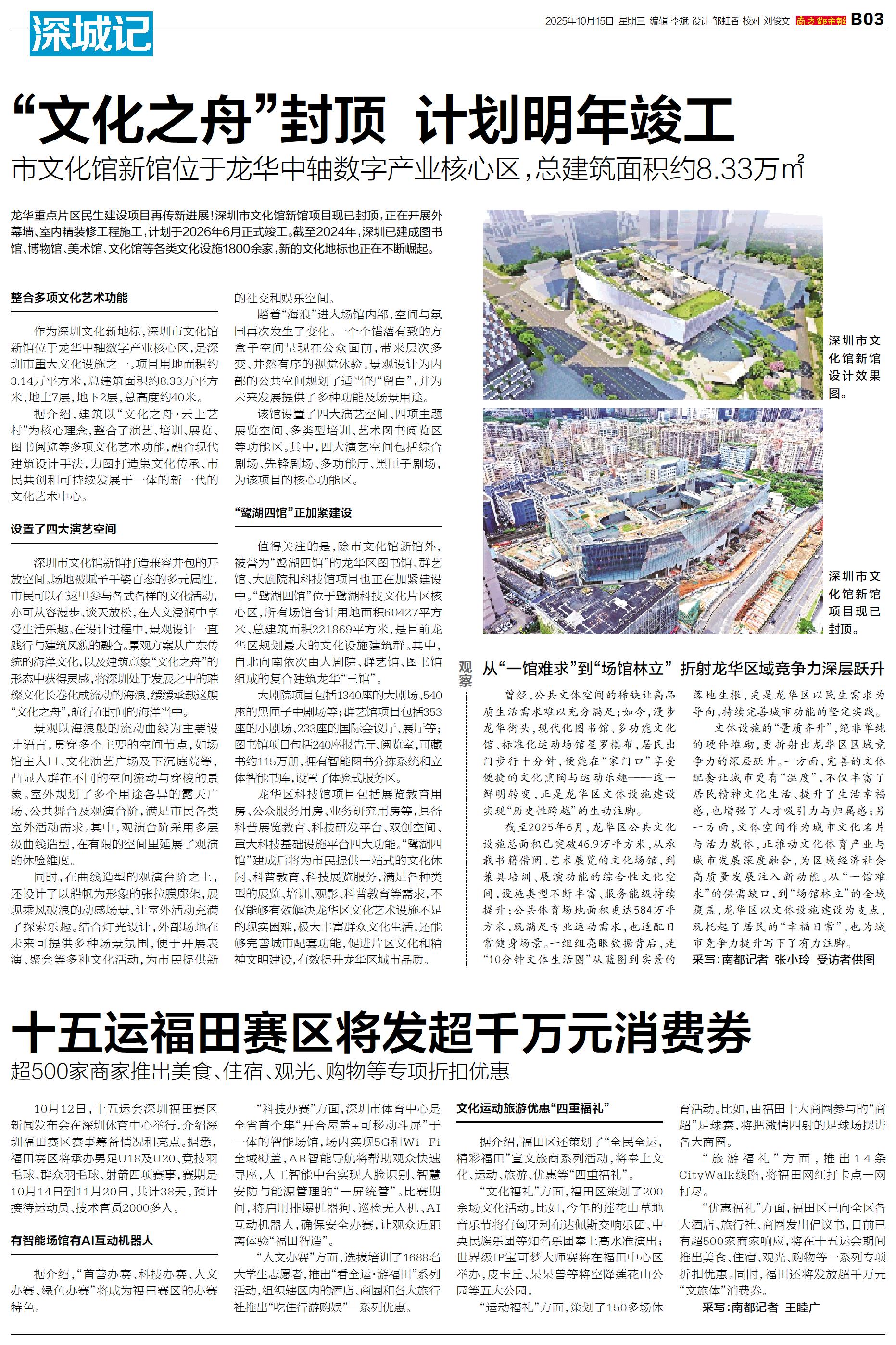 龙华重点片区民生建设项目再传新进展!深圳市文化馆新馆项目现已封顶,正在开展外幕墙、室内精装修工程施工,计划于2026年6月正式竣工。截至2024年,深圳已建成图书馆、博物馆、美术馆、文化馆等各类文