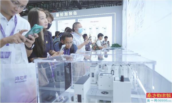 开展首日,深圳新凯来工业机器有限公司(以下简称,新凯来)成为“人气王”,其展位吸引众多参观者驻足观看各种模型和宣传视频。在展会现场,新凯来带来了最新的产品和成果,其中重点展示16款设备模型,以中国名山命名的半导体设备系列格外醒目。光学检测BFI产品“岳麓山”、刻蚀产品“武夷山”、扩散产品“峨眉山”以及薄膜产品“长白山”等设备齐聚一堂,展示了新凯来在半导体全产业链的设备研发能力。