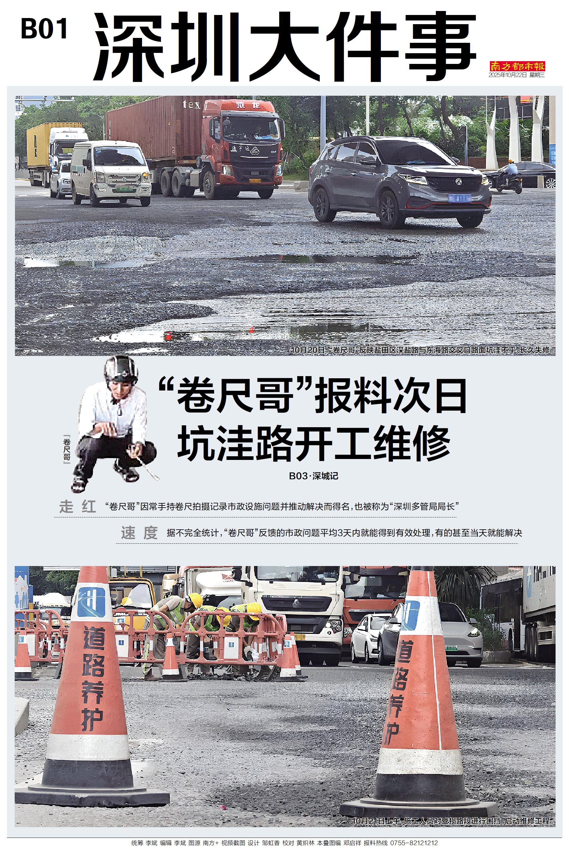 走红 “卷尺哥”因常手持卷尺拍摄记录市政设施问题并推动解决而得名,也被称为“深圳多管局局长” 速度 据不完全统计,“卷尺哥”反馈的市政问题平均3天内就能得到有效处理,有的甚至当天就能解决
