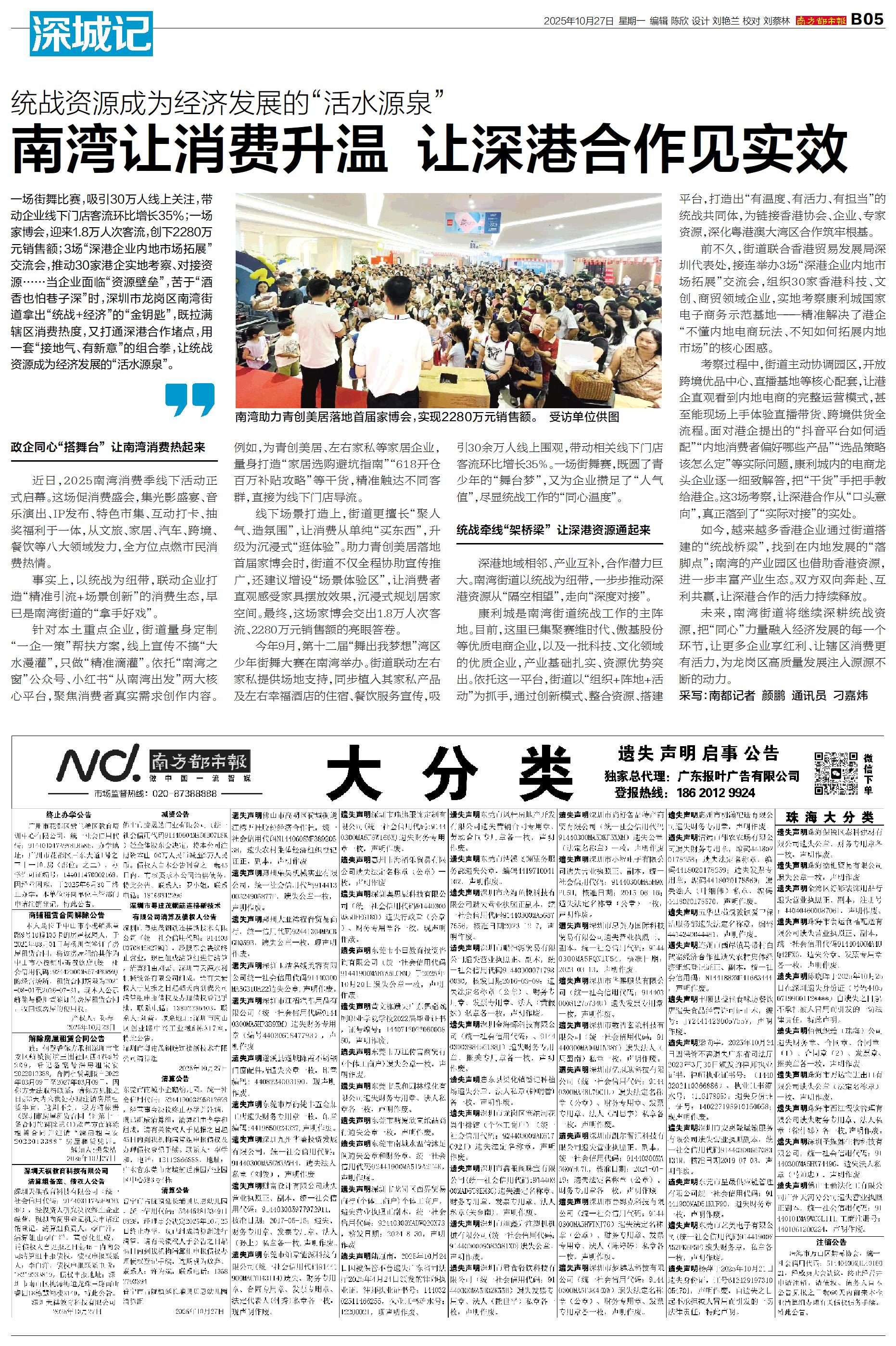 一场街舞比赛,吸引30万人线上关注,带动企业线下门店客流环比增长35%;一场家博会,迎来1.8万人次客流,创下2280万元销售额;3场“深港企业内地市场拓展”交流会,推动30家港企实地考察、对接资
