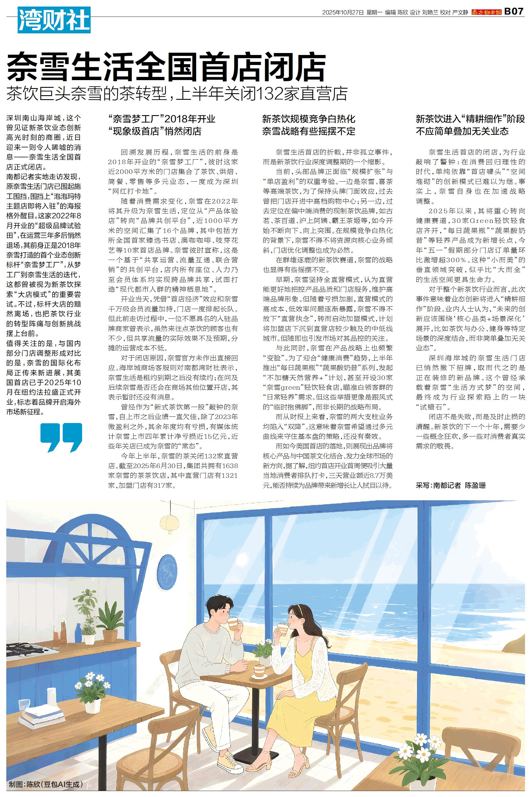 深圳南山海岸城,这个曾见证新茶饮业态创新高光时刻的商圈,近日迎来一则令人唏嘘的消息——奈雪生活全国首店正式闭店。 南都记者实地走访发现,原奈雪生活门店已围起施工围挡,围挡上“泡泡玛特主题店即将入