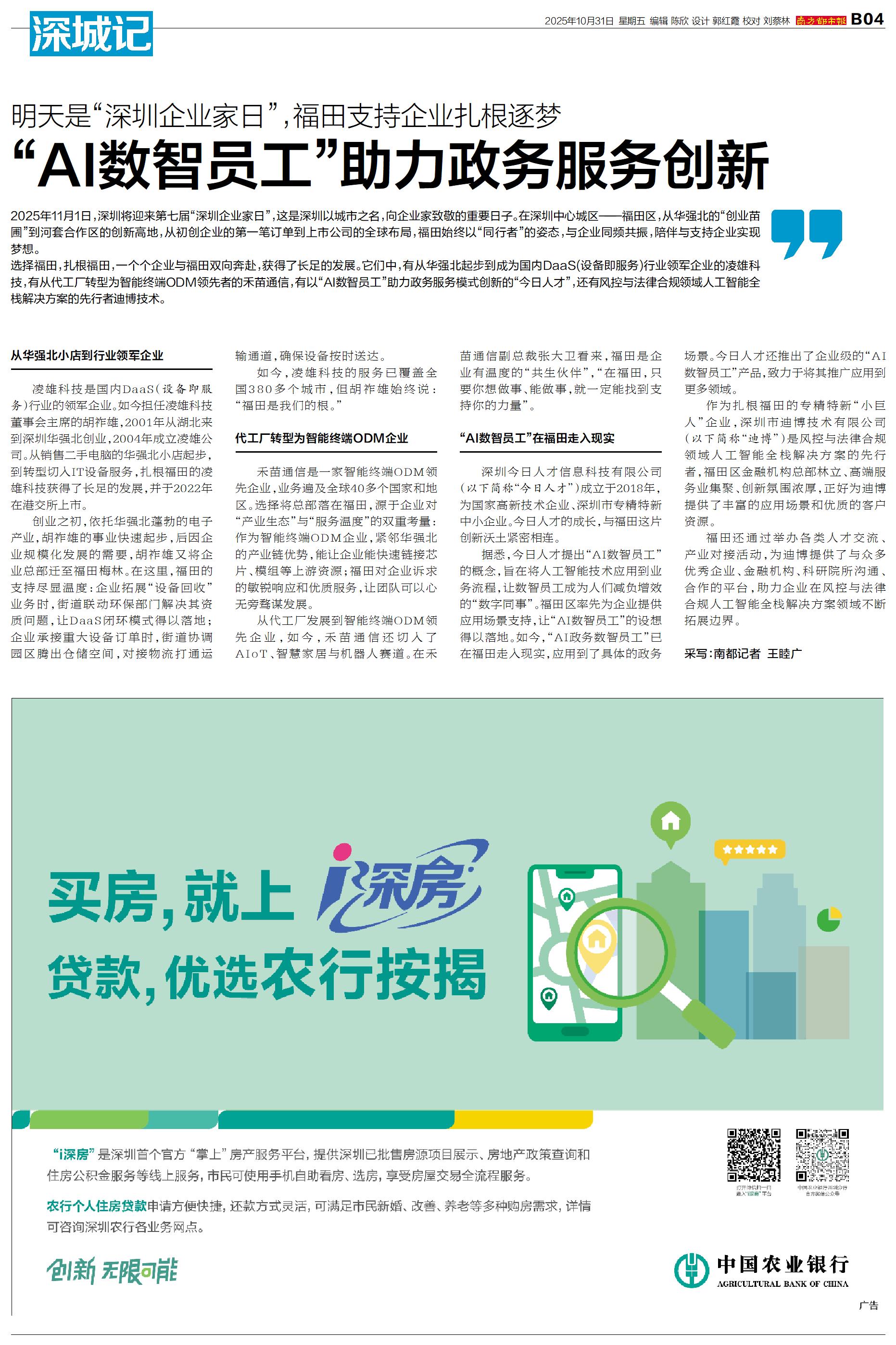 2025年11月1日,深圳将迎来第七届“深圳企业家日”,这是深圳以城市之名,向企业家致敬的重要日子。在深圳中心城区——福田区,从华强北的“创业苗圃”到河套合作区的创新高地,从初创企业的第一笔订单到