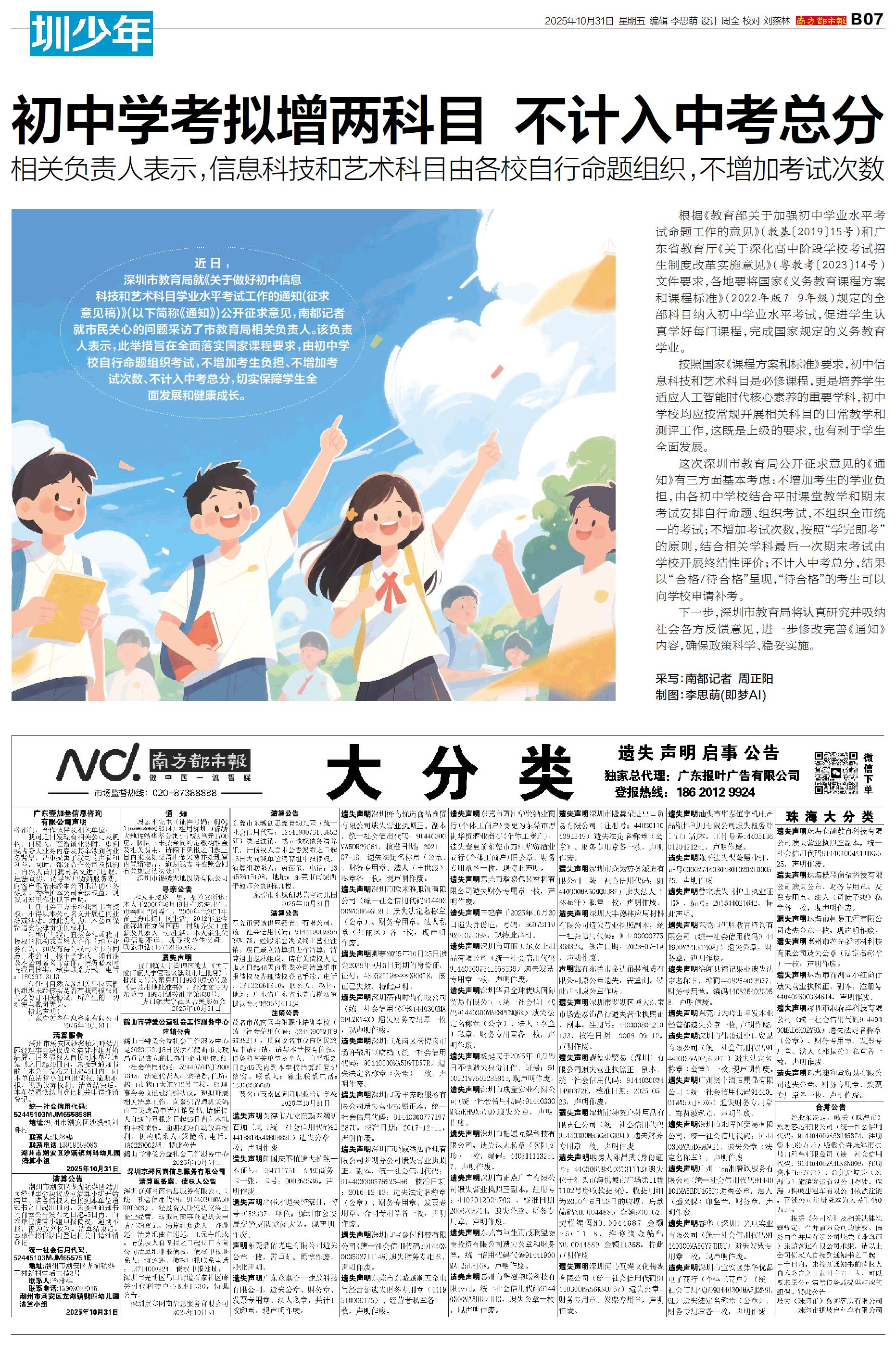 近日,深圳市教育局就《关于做好初中信息科技和艺术科目学业水平考试工作的通知(征求意见稿)》(以下简称《通知》)公开征求意见,南都记者就市民关心的问题采访了市教育局相关负责人。该负责人表示,此举措旨