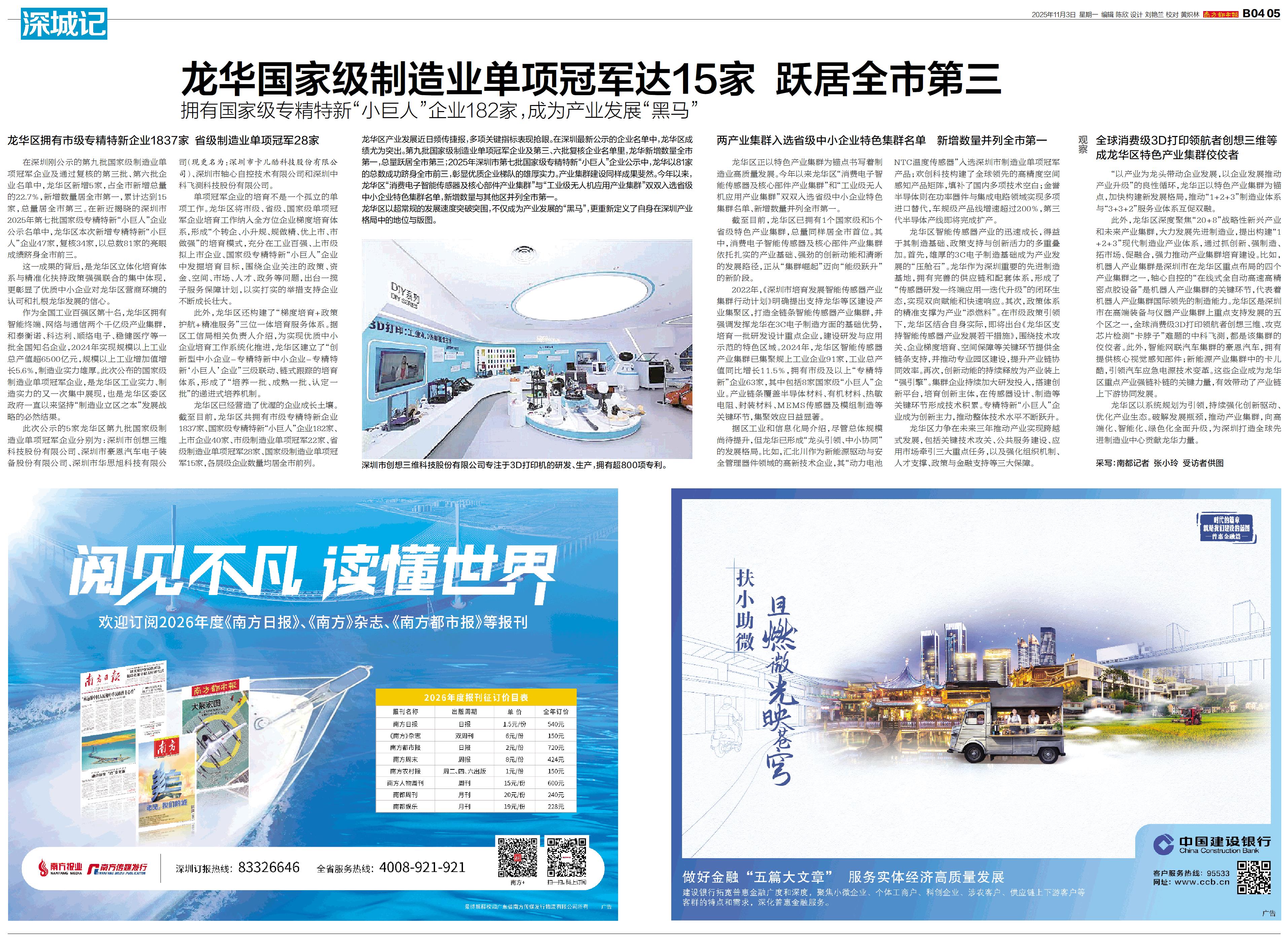 龙华国家级制造业单项冠军达15家 跃居全市第三