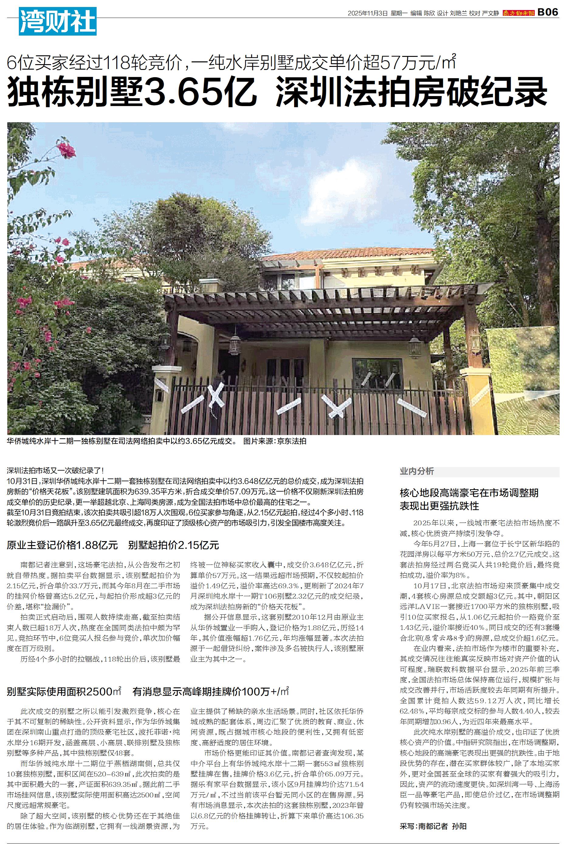 独栋别墅3.65亿 深圳法拍房破纪录