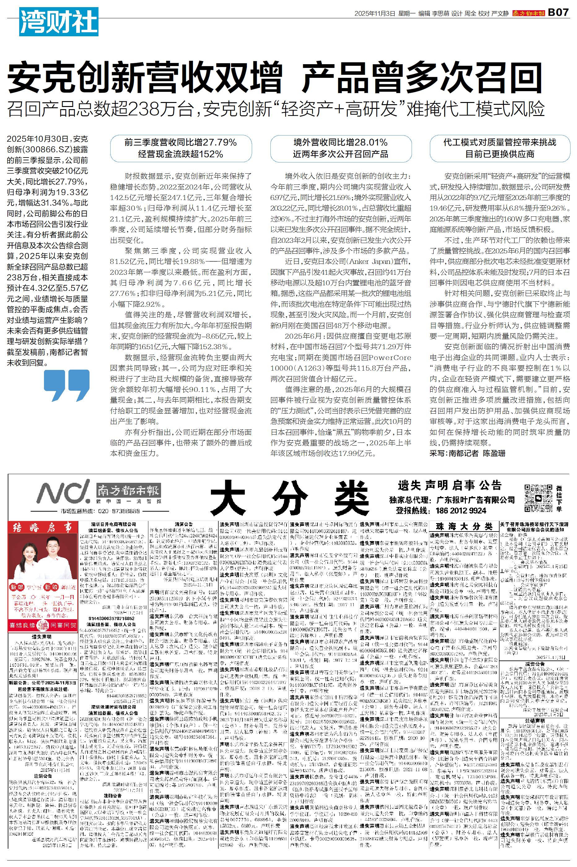 安克创新营收双增 产品曾多次召回
