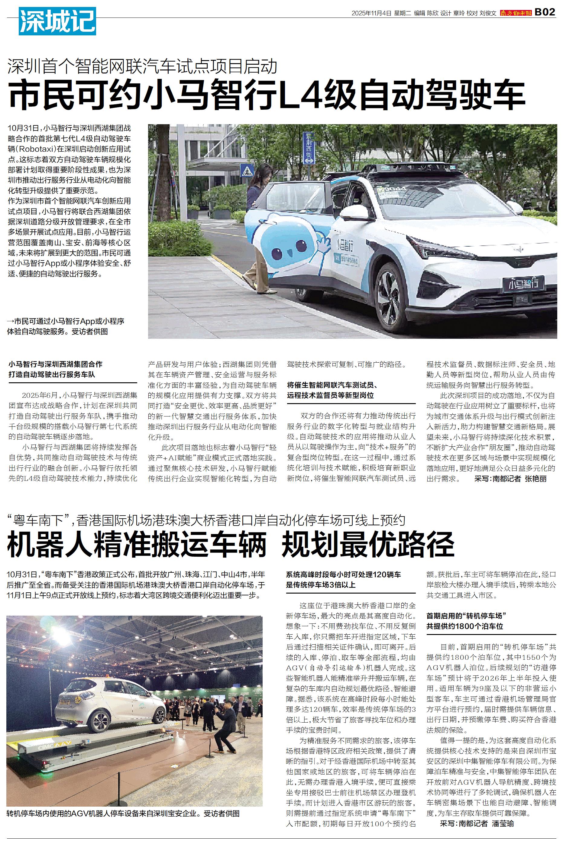 10月31日,小马智行与深圳西湖集团战略合作的首批第七代L4级自动驾驶车辆(Robotaxi)在深圳启动创新应用试点。这标志着双方自动驾驶车辆规模化部署计划取得重要阶段性成果,也为深圳市推动出行服