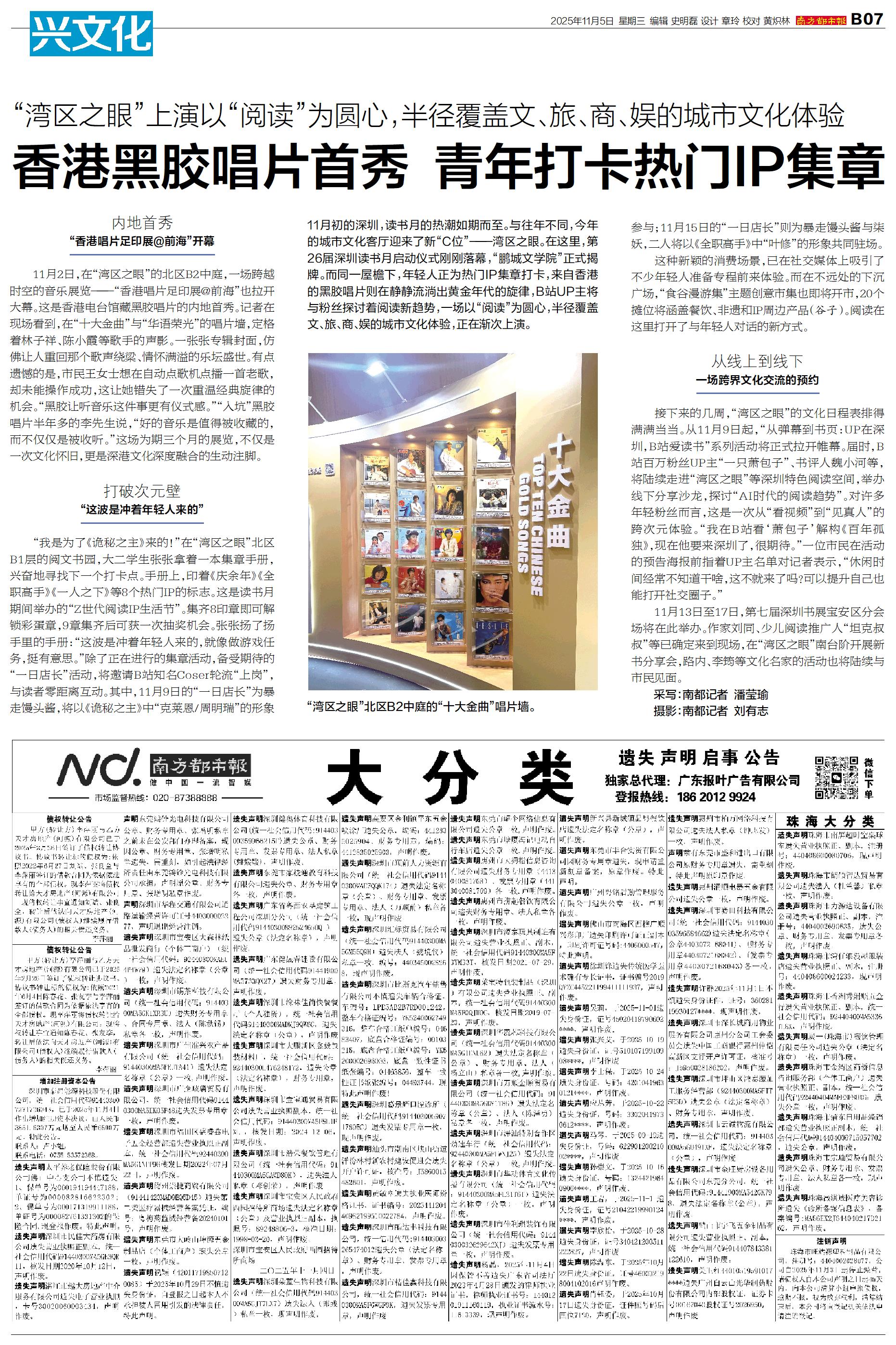 11月初的深圳,读书月的热潮如期而至。与往年不同,今年的城市文化客厅迎来了新“C位”——湾区之眼。在这里,第26届深圳读书月启动仪式刚刚落幕,“鹏城文学院”正式揭牌。而同一屋檐下,年轻人正为热门I