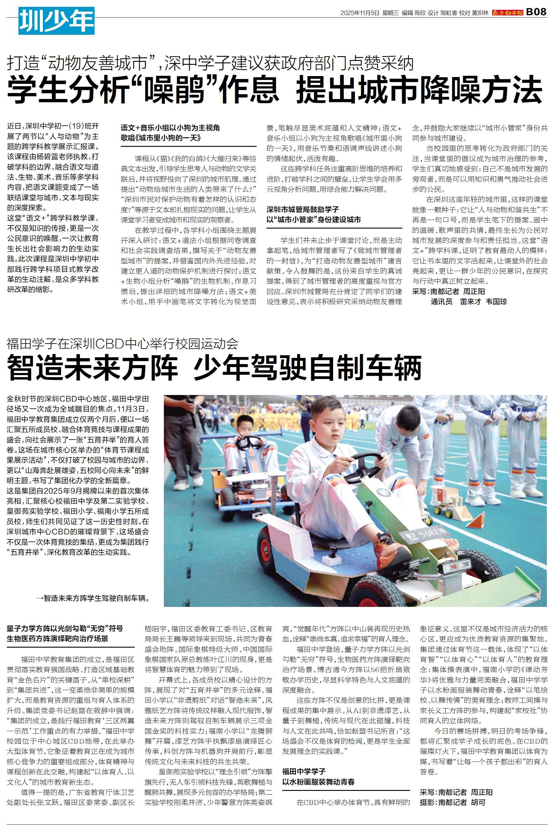 金秋时节的深圳CBD中心地区,福田中学田径场又一次成为全城瞩目的焦点。11月3日,福田中学教育集团成立仅两个月后,便以一场汇聚五所成员校、融合体育竞技与课程成果的盛会,向社会展示了一张“五育并举”