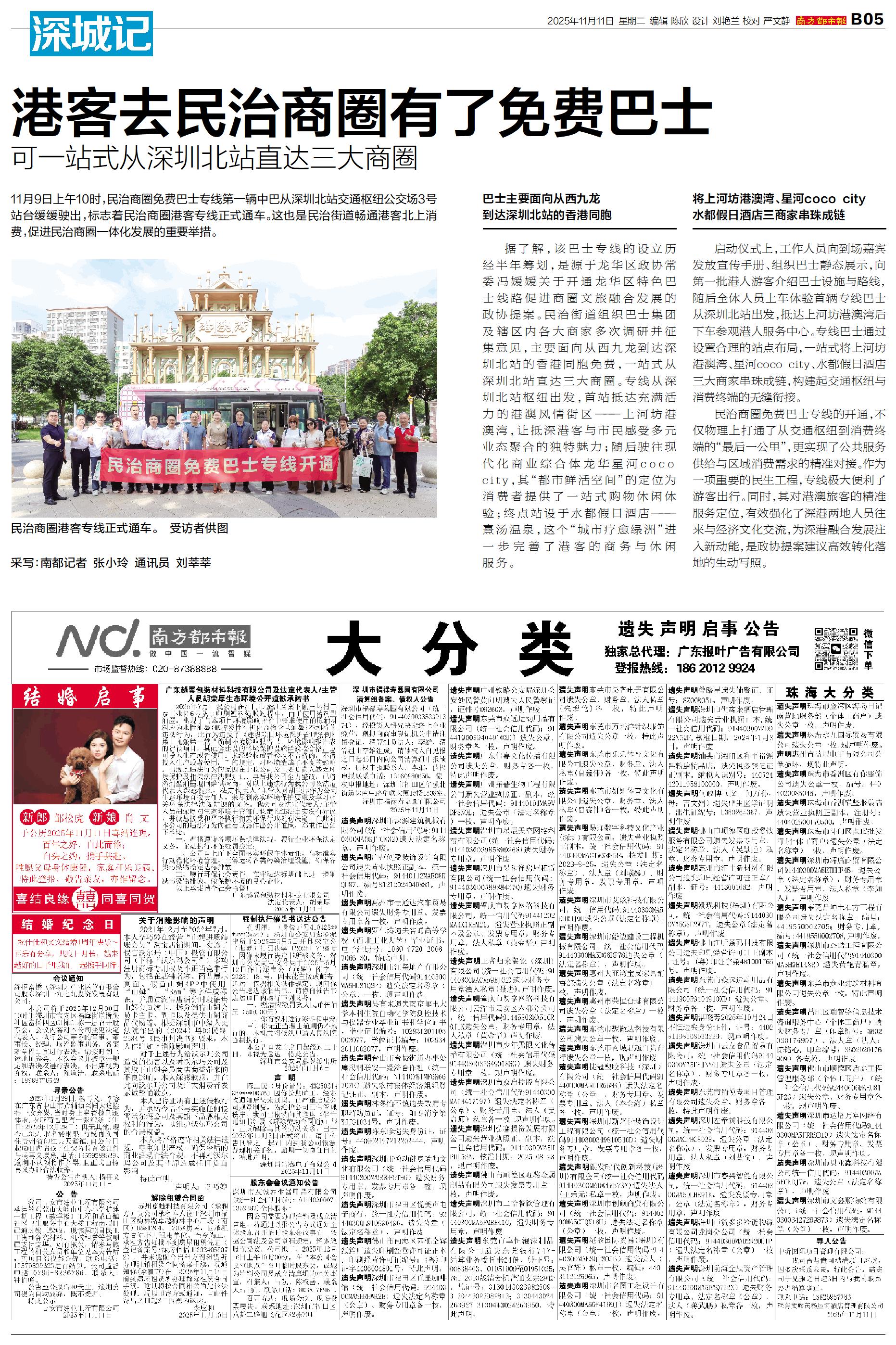 11月9日上午10时,民治商圈免费巴士专线第一辆中巴从深圳北站交通枢纽公交场3号站台缓缓驶出,标志着民治商圈港客专线正式通车。这也是民治街道畅通港客北上消费,促进民治商圈一体化发展的重要举措。