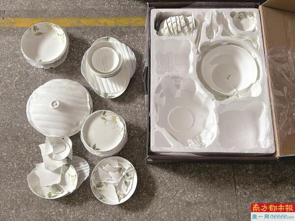 揽收时拍摄的照片显示礼盒外包装基本完好,但收货时却发现盒内已有多个餐具破碎。深圳派送点工作人员在初步查验后告知她“碎了一个汤锅、五个小碗,碟子数量暂无法确认”,并解释损坏可能源于“货物掉落、路途颠簸或被重物挤压”等多种因素。