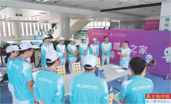 来自哈尔滨工业大学(深圳)的大二学生罗焌庭,便是其中的一员。作为一名来自澳门的湾区青年,在服务中,他很自然地成了一座沟通的桥梁。“得知今年全运会是由粤港澳三地合办以后,我也想为体育赛事出一份力,就立刻报名了。”他的工作,主要是抵离引导。在机场、在高铁站,他需要反复地做着等待、指引、送上大巴等流程。当面对来自港澳等粤语地区的同胞时,他能自如地切换到粤语,用乡音拉近距离,耐心解释流程细节。这种基于文化认同的精准服务,有效地消除了运动员们初到异地的陌生感,让他们感受到了大湾区内部的亲切与融合。事实上,在服务的过程中,常常有普通旅客上前来问路,他也热情地解答。他慢慢发觉,“自己服务的对象不只是运动员,而是每一个身处此地、需要帮助的人。”