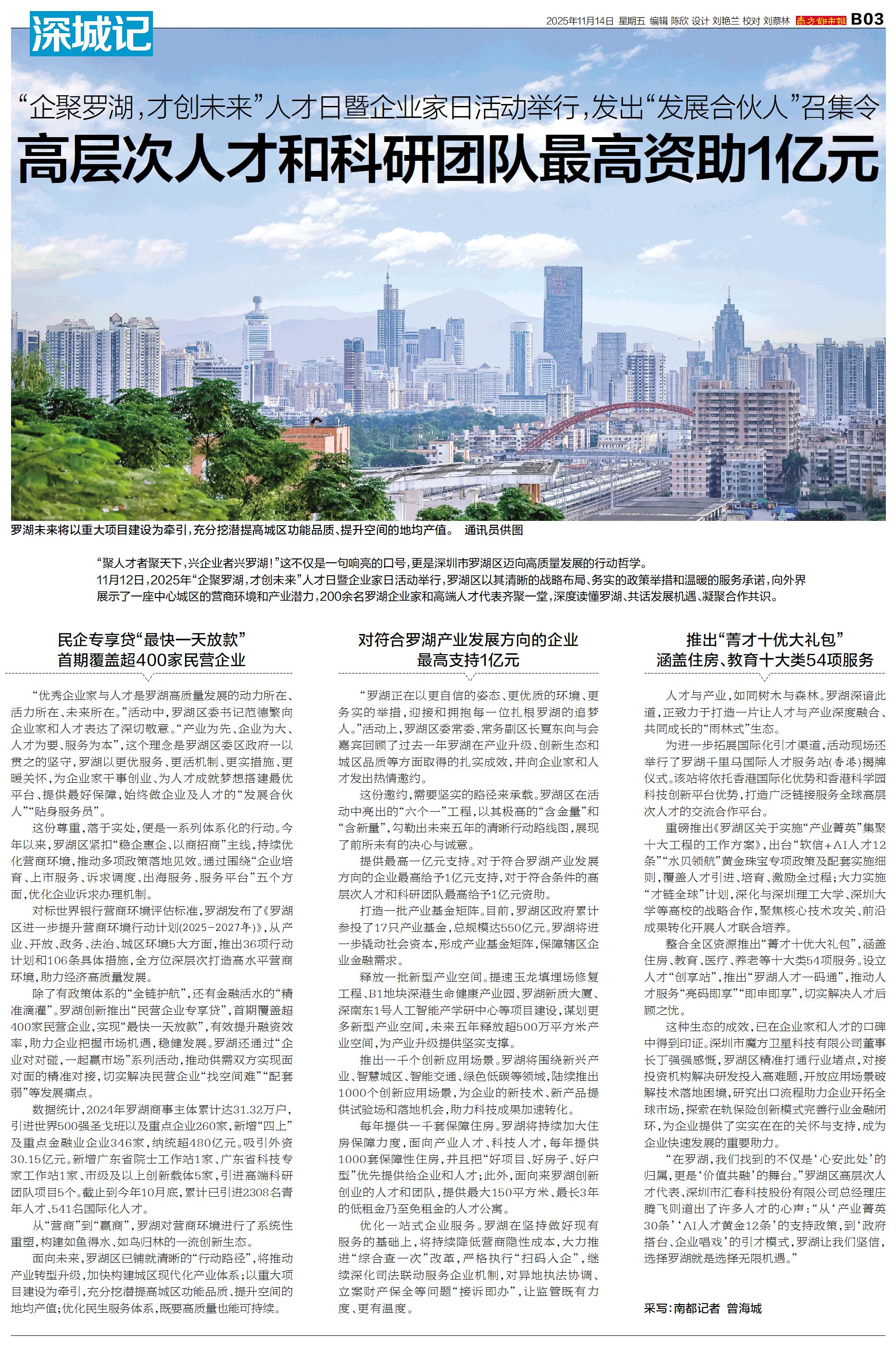 “聚人才者聚天下,兴企业者兴罗湖!”这不仅是一句响亮的口号,更是深圳市罗湖区迈向高质量发展的行动哲学。 11月12日,2025年“企聚罗湖,才创未来”人才日暨企业家日活动举行,罗湖区以其清晰的战