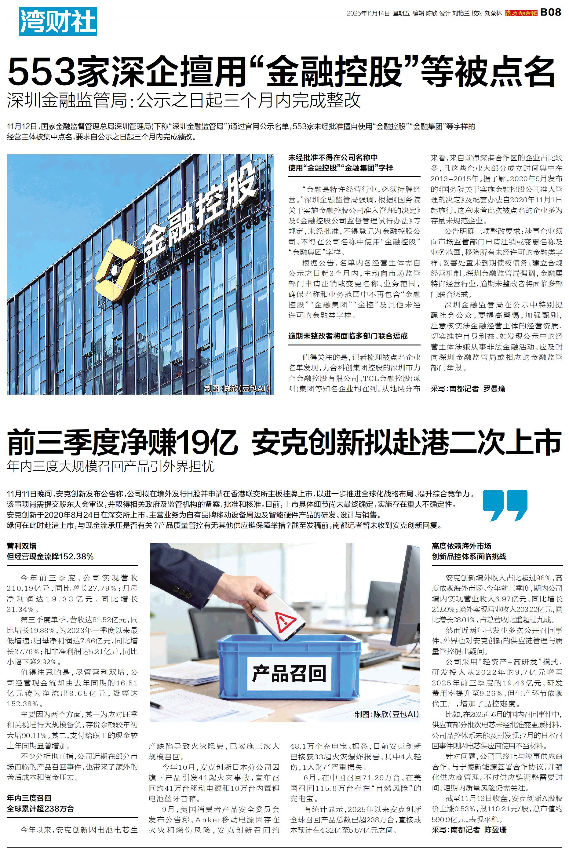 11月12日,国家金融监督管理总局深圳管理局(下称“深圳金融监管局”)通过官网公示名单,553家未经批准擅自使用“金融控股”“金融集团”等字样的经营主体被集中点名,要求自公示之日起三个月内完成整改