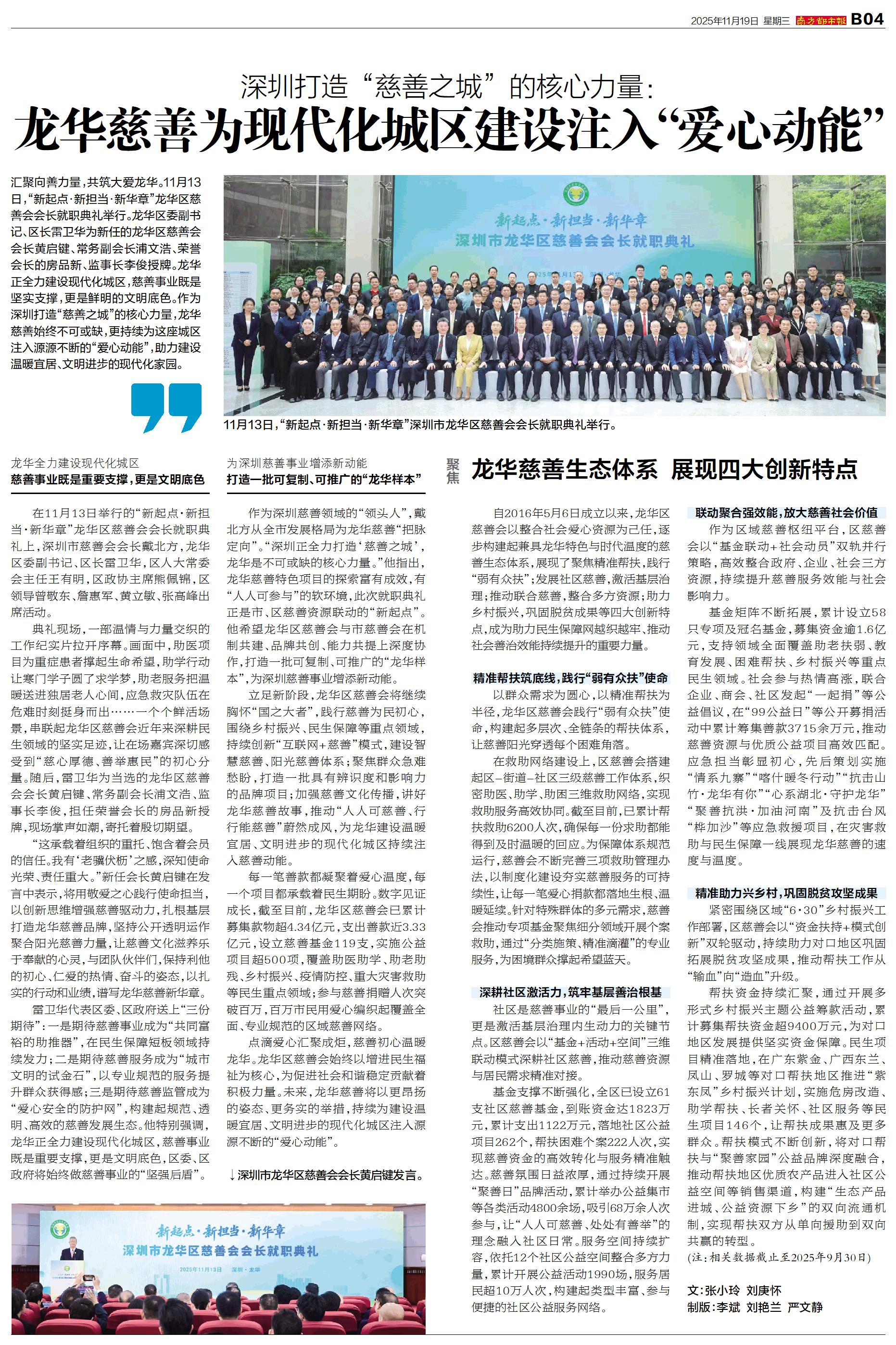 自2016年5月6日成立以来,龙华区慈善会以整合社会爱心资源为己任,逐步构建起兼具龙华特色与时代温度的慈善生态体系,展现了聚焦精准帮扶,践行“弱有众扶”;发展社区慈善,激活基层治理;推动联合慈善,整合多方资源;助力乡村振兴,巩固脱贫成果等四大创新特点,成为助力民生保障网越织越牢、推动社会善治效能持续提升的重要力量。