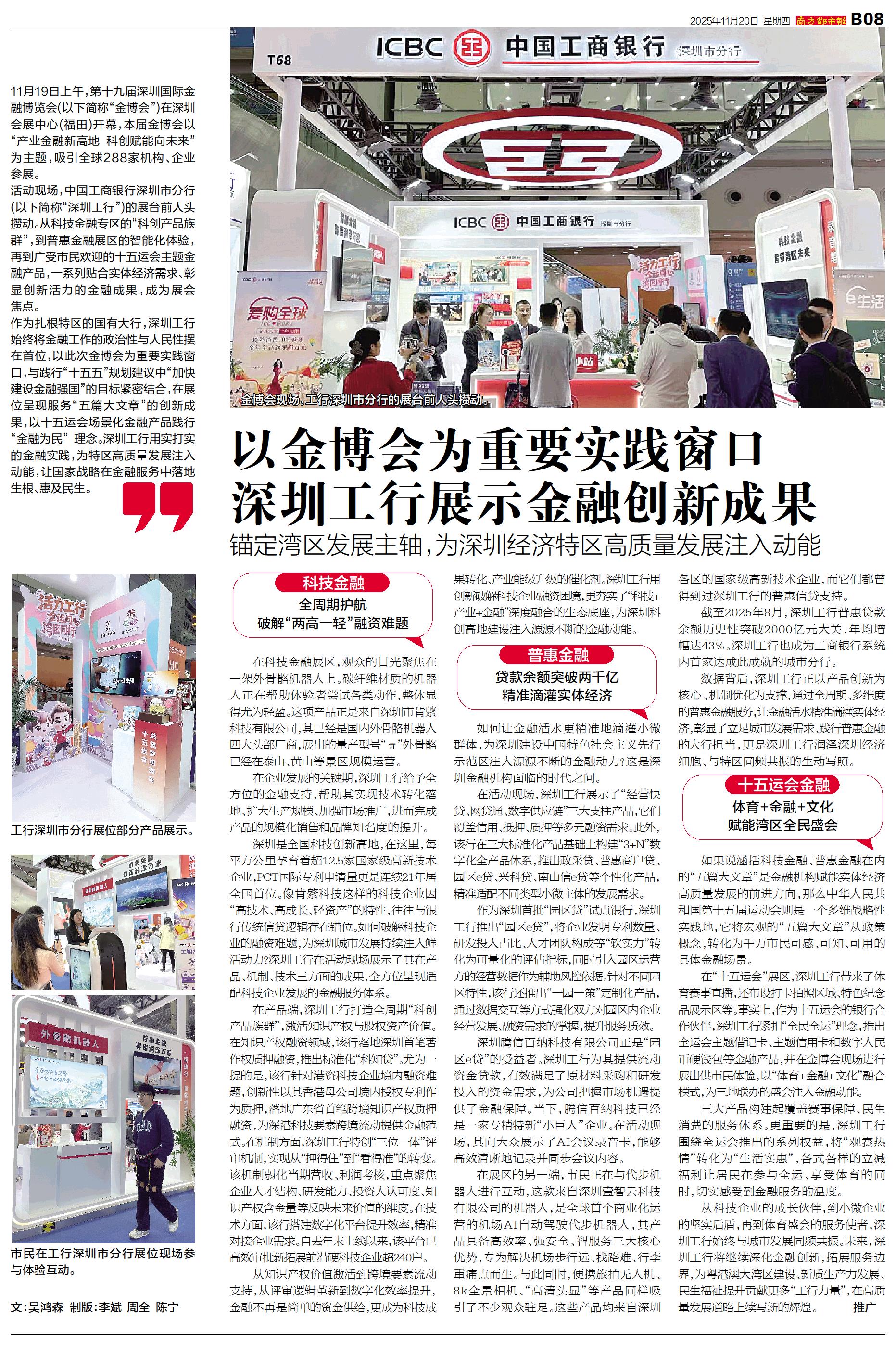 以金博会为重要实践窗口 深圳工行展示金融创新成果