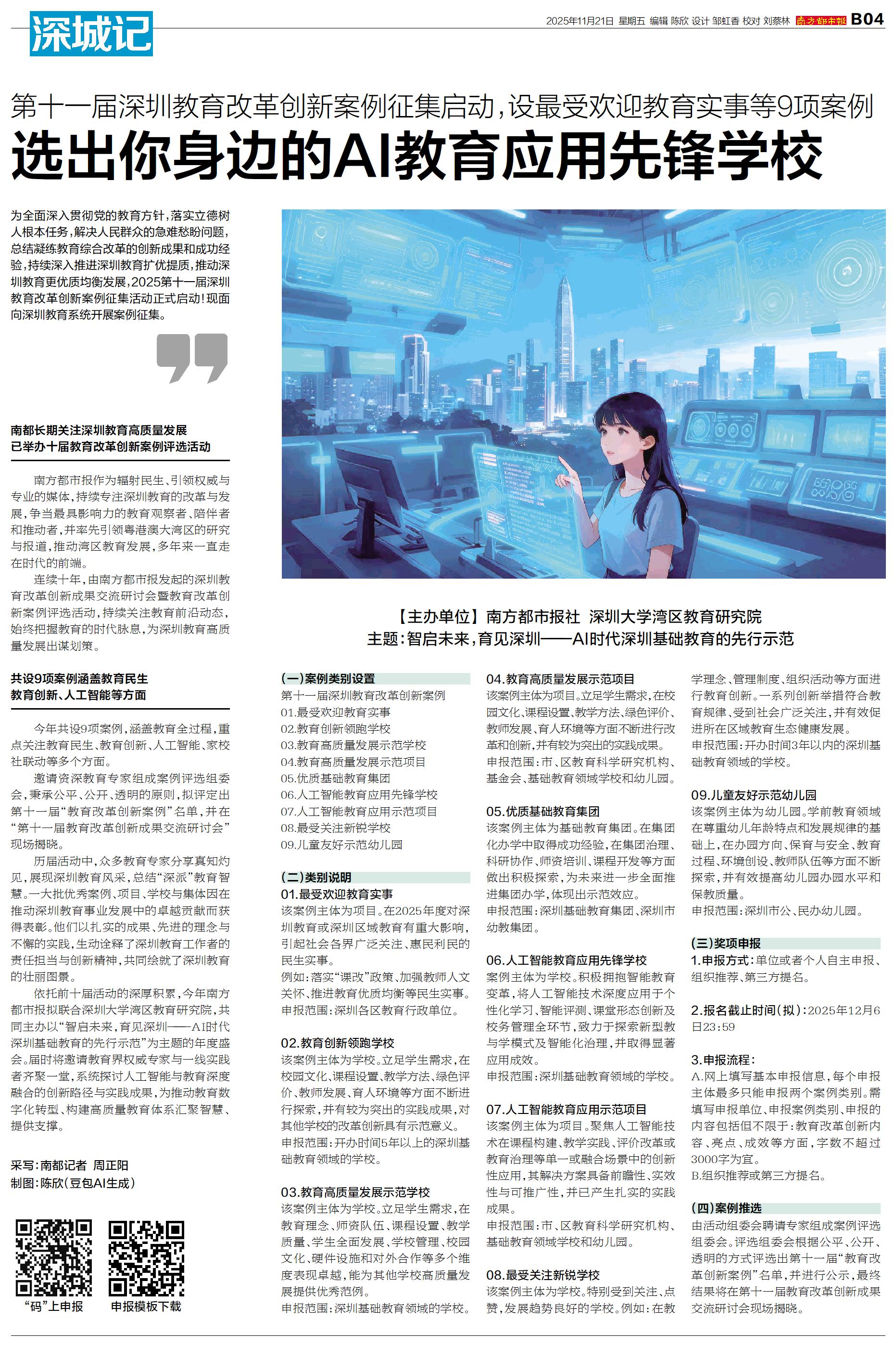 为全面深入贯彻党的教育方针,落实立德树人根本任务,解决人民群众的急难愁盼问题,总结凝练教育综合改革的创新成果和成功经验,持续深入推进深圳教育扩优提质,推动深圳教育更优质均衡发展,2025第十一届深