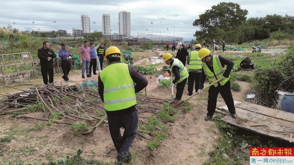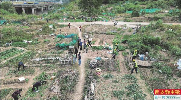 11月13日,南都N视频记者再次探访时,龙岗街道执法队正在清除原绿道区域的违规菜地。据街道办相关负责人介绍,11月10日起,街道已张贴温馨提示及限期整改书,劝导种植户停止非法种菜并复原地块。当天出动执法人员6人、工人10人,以督促自行清理为主,清理面积约2000平方米,预计需3至4天完成。