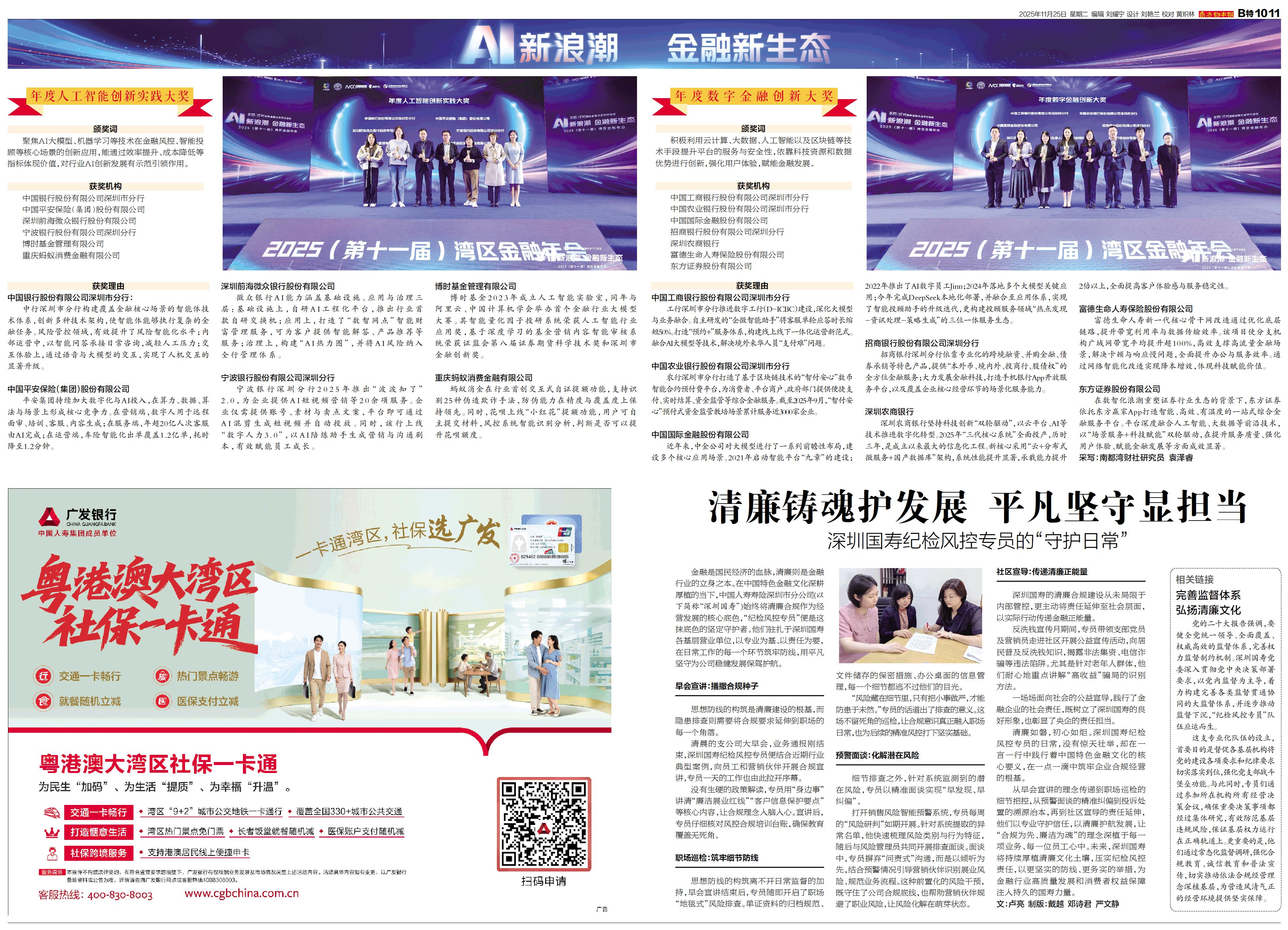 金融是国民经济的血脉,清廉则是金融行业的立身之本。在中国特色金融文化深耕厚植的当下,中国人寿寿险深圳市分公司(以下简称“深圳国寿”)始终将清廉合规作为经营发展的核心底色,“纪检风控专员”便是这抹底