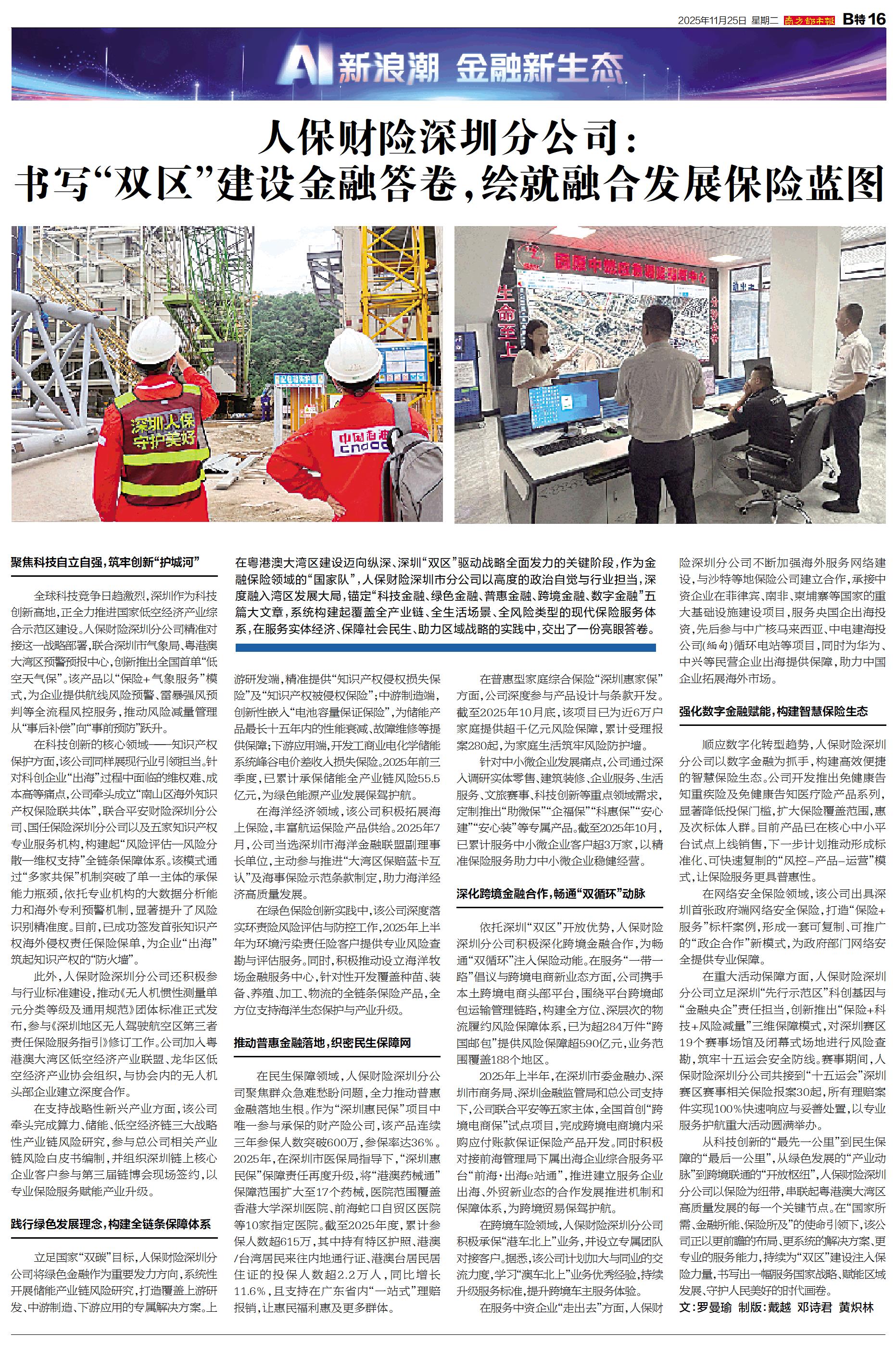 人保财险深圳分公司:书写“双区”建设金融答卷,绘就融合发展保险蓝图