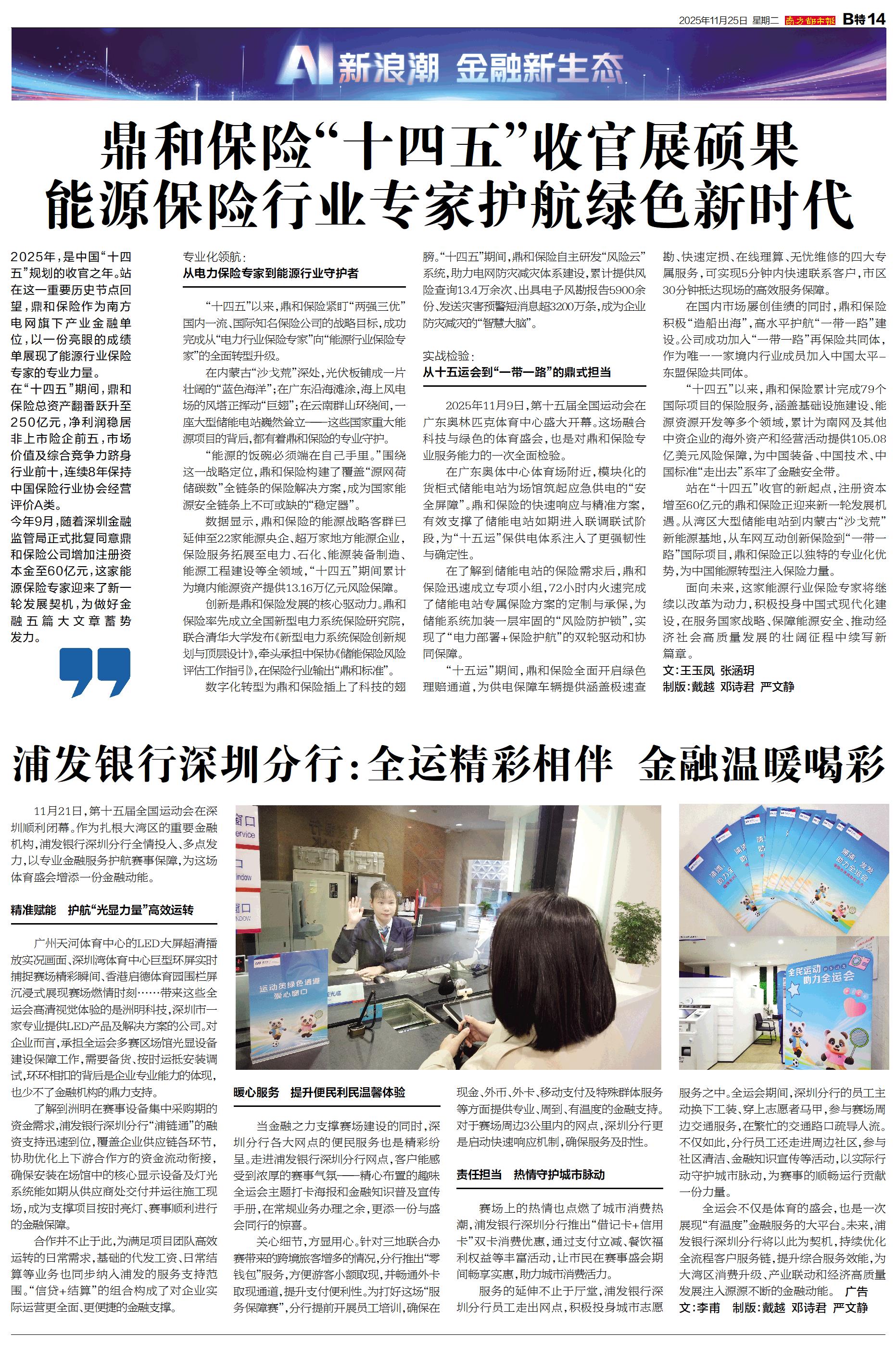 11月21日,第十五届全国运动会在深圳顺利闭幕。作为扎根大湾区的重要金融机构,浦发银行深圳分行全情投入、多点发力,以专业金融服务护航赛事保障,为这场体育盛会增添一份金融动能。 精准赋能 护航