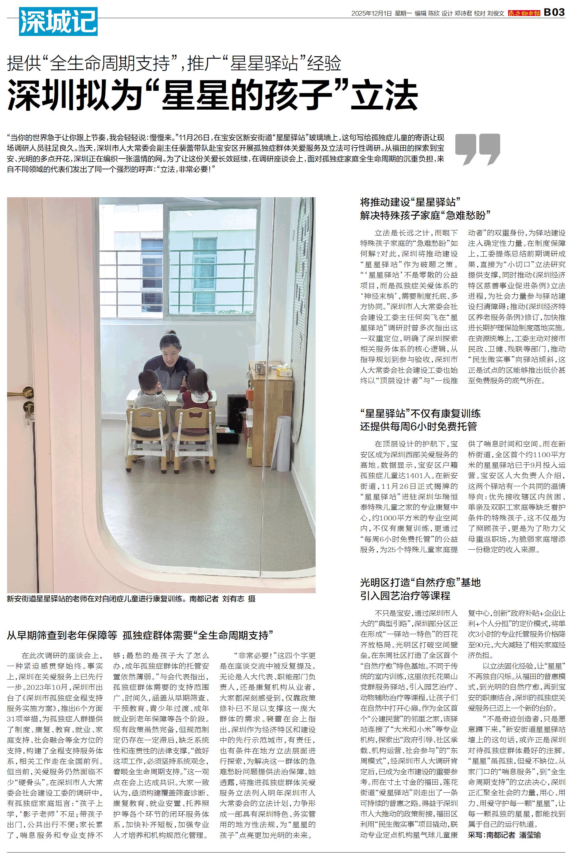 深圳拟为“星星的孩子”立法