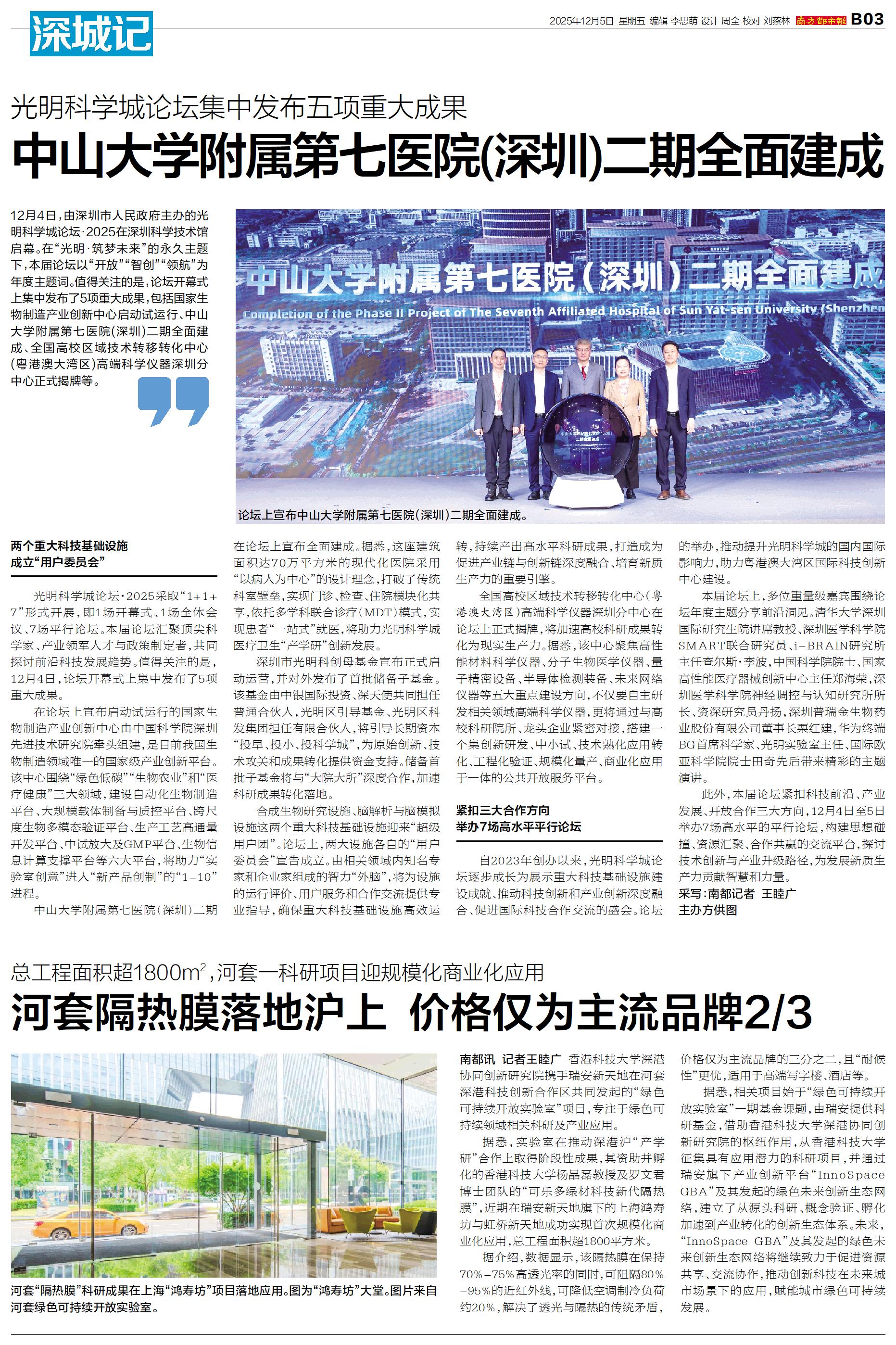 南都讯 记者王睦广 香港科技大学深港协同创新研究院携手瑞安新天地在河套深港科技创新合作区共同发起的“绿色可持续开放实验室”项目,专注于绿色可持续领域相关科研及产业应用。 据悉,实验室在推动深港沪