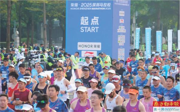 12月7日清晨,荣耀·2025深圳马拉松在市民中心鸣枪起跑
