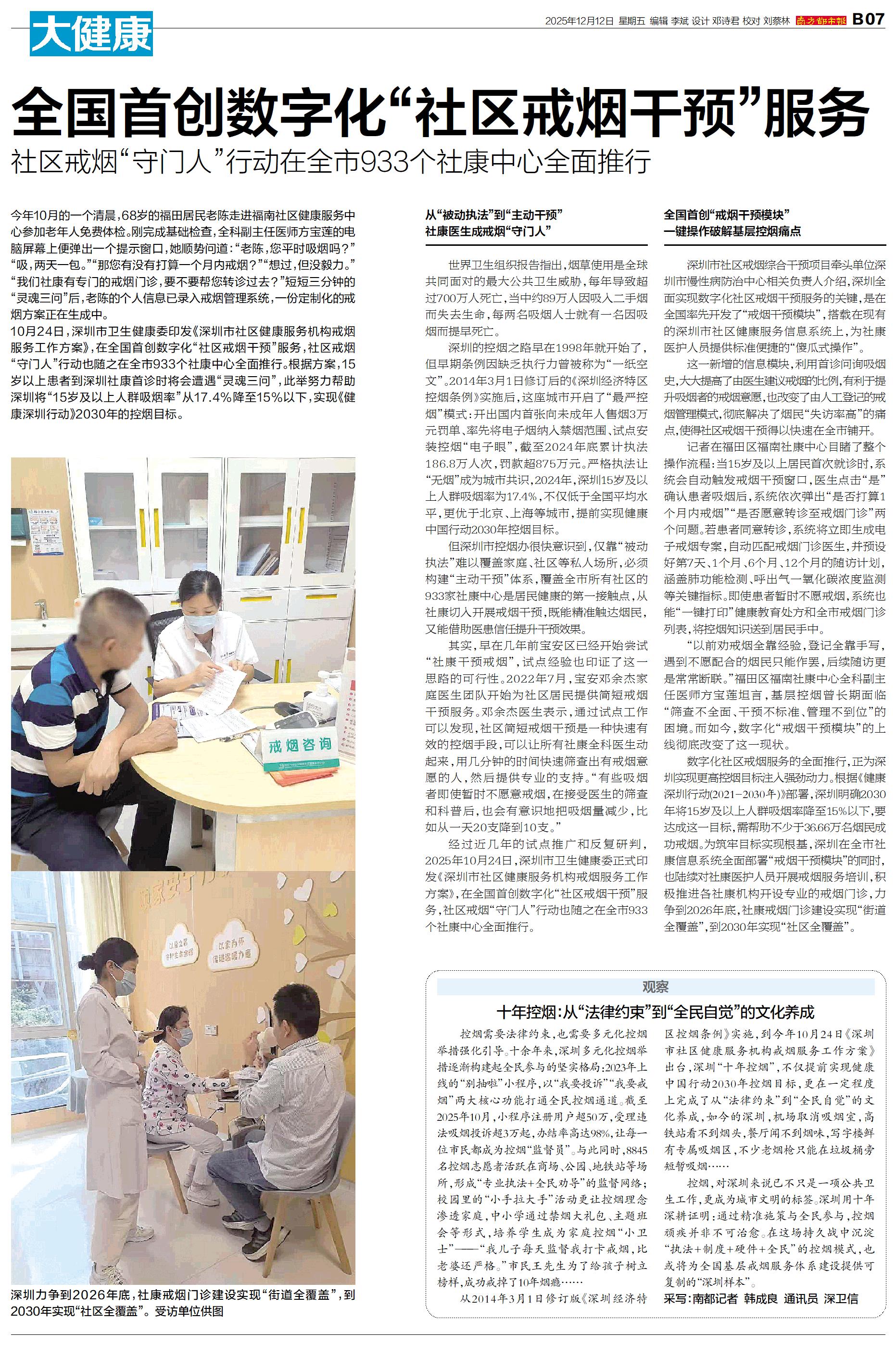 今年10月的一个清晨,68岁的福田居民老陈走进福南社区健康服务中心参加老年人免费体检。刚完成基础检查,全科副主任医师方宝莲的电脑屏幕上便弹出一个提示窗口,她顺势问道:“老陈,您平时吸烟吗?”“吸,