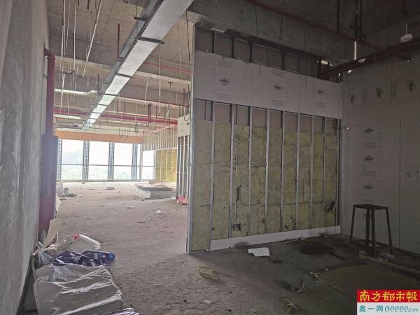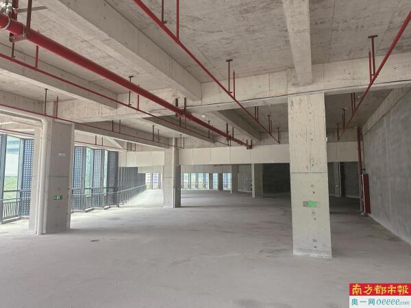 7号楼的入驻率也不高。从一层大厅的企业指示牌可以看到,该栋楼的7层和8层有深圳市大鹏新区产业投资集团有限公司及深圳市远智城市运营服务有限公司,5层则有一家生物技术公司,其他楼层显示空白。记者走访发现,5层的那家生物技术只占很小一片区域,且刚入驻不久。彼时,隔壁的区域有人正在进行测量。5层的另一侧则完全空置,连男厕都没开放。该栋楼6层一侧,一家公司的装修已经进入尾声。生物家园物业管理人员介绍,7号楼已经有大半场地已经出租。但根据记者实地走访,该栋楼内部依旧毛坯居多。